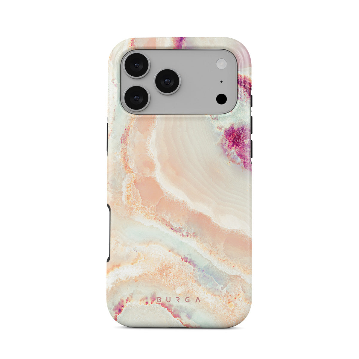 The soft color scheme of coral, pink, blue, and purple of our Berry Sorbet iPhone 17 Pro Max phone case radiates soft girly vibes. The feminine touch is felt throughout the design, making it an excellent choice to add to the springtime wardrobe and protect your phone from scratches and falls.
