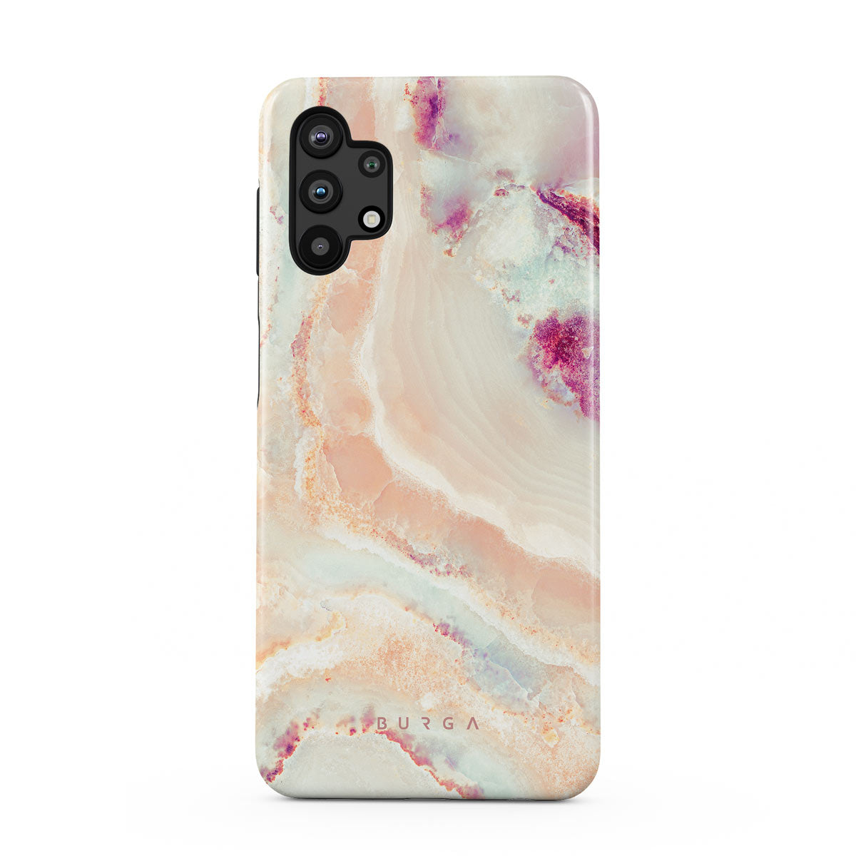 The soft color scheme of coral, pink, blue, and purple of our Berry Sorbet Samsung Galaxy A32 5G phone case radiates soft girly vibes. The feminine touch is felt throughout the design, making it an excellent choice to add to the springtime wardrobe and protect your phone from scratches and falls.