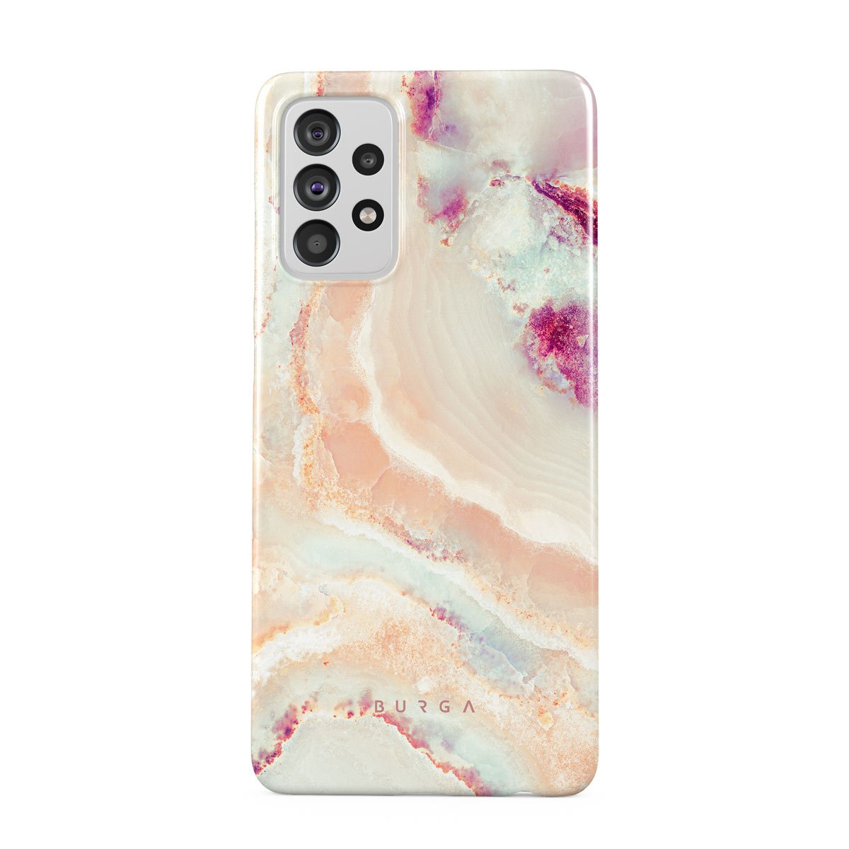The soft color scheme of coral, pink, blue, and purple of our Berry Sorbet Samsung Galaxy A72 phone case radiates soft girly vibes. The feminine touch is felt throughout the design, making it an excellent choice to add to the springtime wardrobe and protect your phone from scratches and falls.