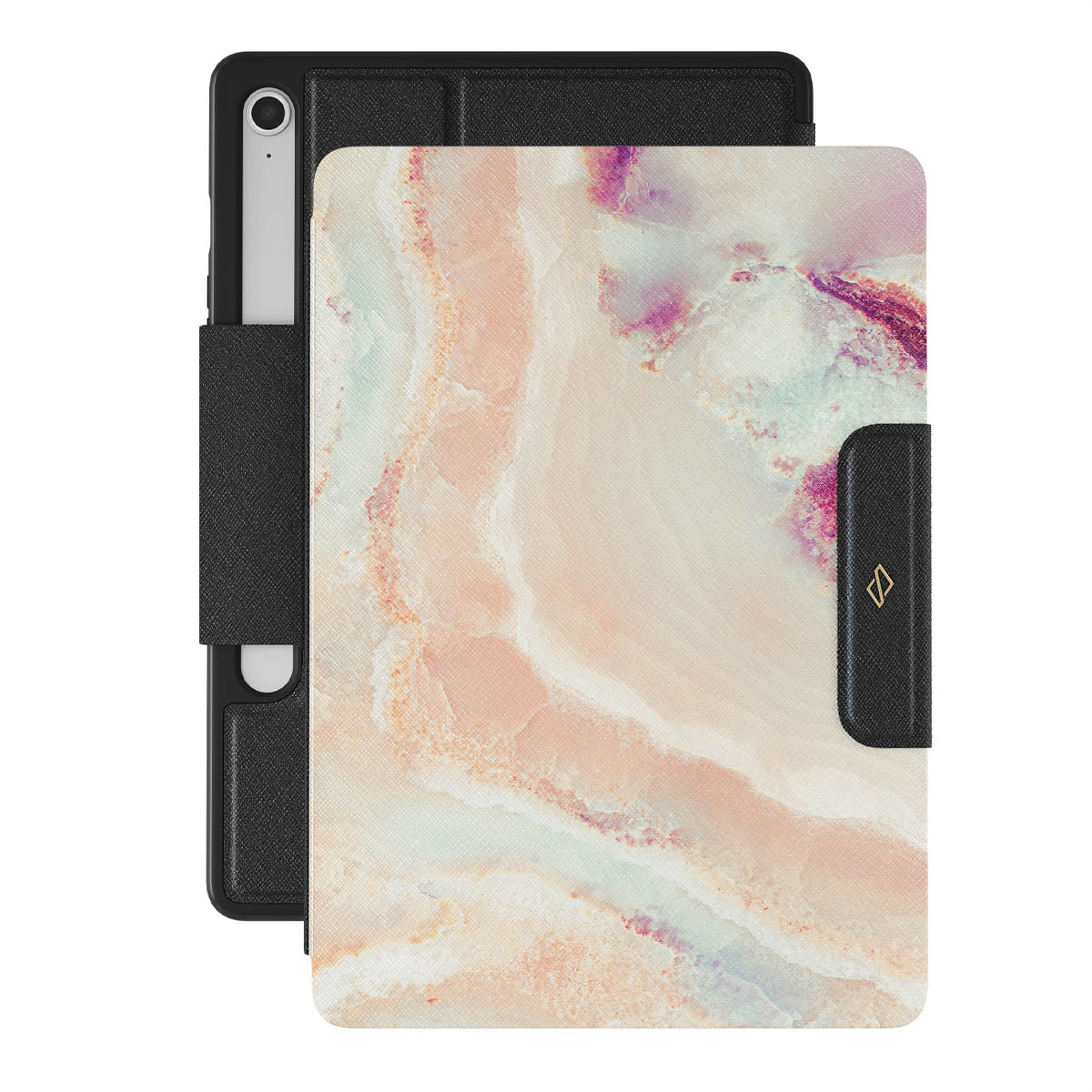 The soft color scheme of coral, pink, blue, and purple of our Berry Sorbet Samsung Galaxy Tab S10 FE folio case radiates soft girly vibes. The feminine touch is felt throughout the design, making it an excellent choice to add to the springtime wardrobe and protect your Galaxy Tab from scratches and falls.