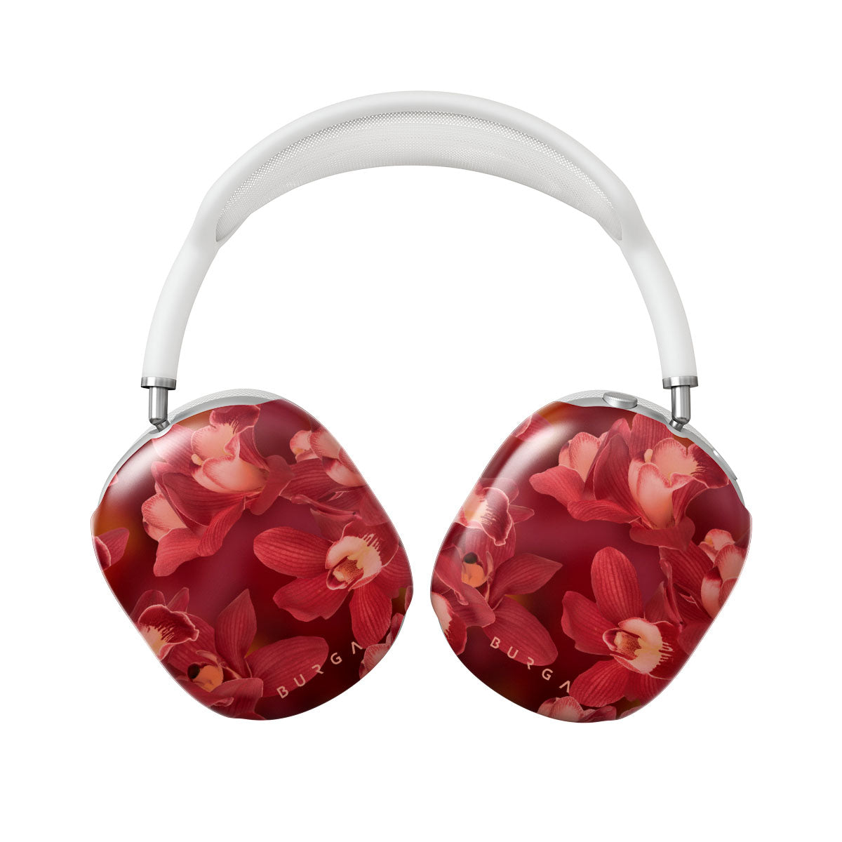 The deep red orchids emerge with a passionate intensity, evoking the fervor and depth of emotions that come with fully experiencing life. They are a vibrant call to embrace every heartbeat, to live deeply and love boldly. Discover the Goddess Energy Apple AirPods Max case cover design.