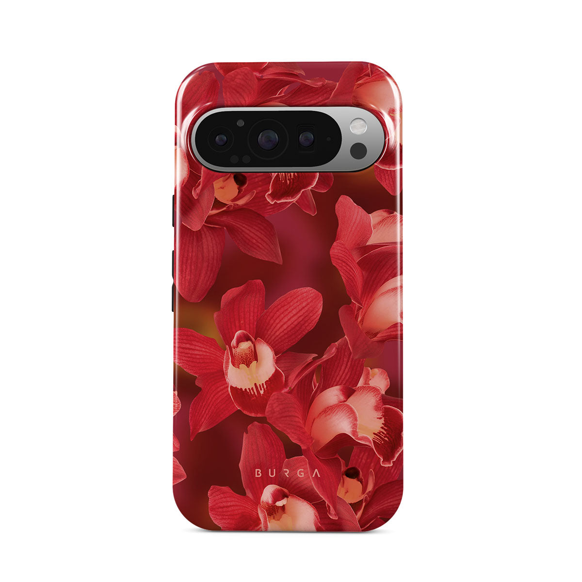The deep red orchids emerge with a passionate intensity, evoking the fervor and depth of emotions that come with fully experiencing life. They are a vibrant call to embrace every heartbeat, to live deeply and love boldly. Discover the Goddess Energy Google Pixel 9 Pro XL phone case design.