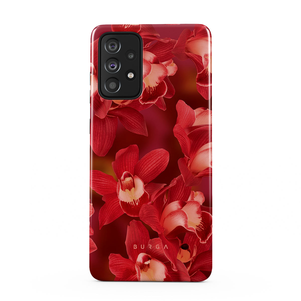 The deep red orchids emerge with a passionate intensity, evoking the fervor and depth of emotions that come with fully experiencing life. They are a vibrant call to embrace every heartbeat, to live deeply and love boldly. Discover the Goddess Energy Samsung Galaxy A52 / A52S 4G / 5G phone case design.