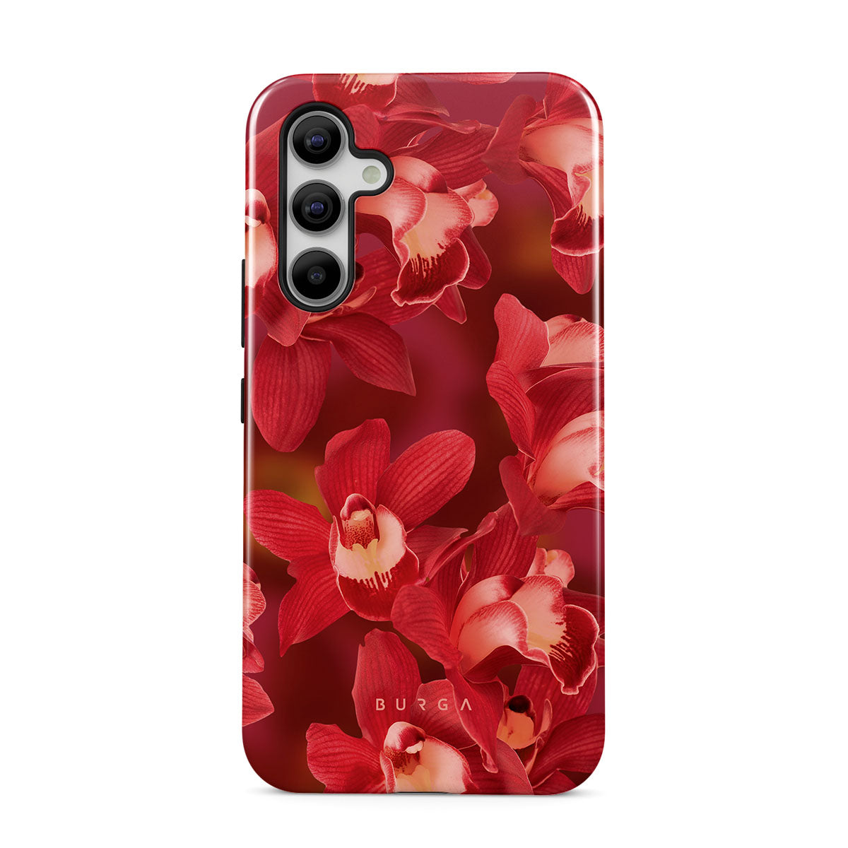 The deep red orchids emerge with a passionate intensity, evoking the fervor and depth of emotions that come with fully experiencing life. They are a vibrant call to embrace every heartbeat, to live deeply and love boldly. Discover the Goddess Energy Samsung Galaxy A55 phone case design.