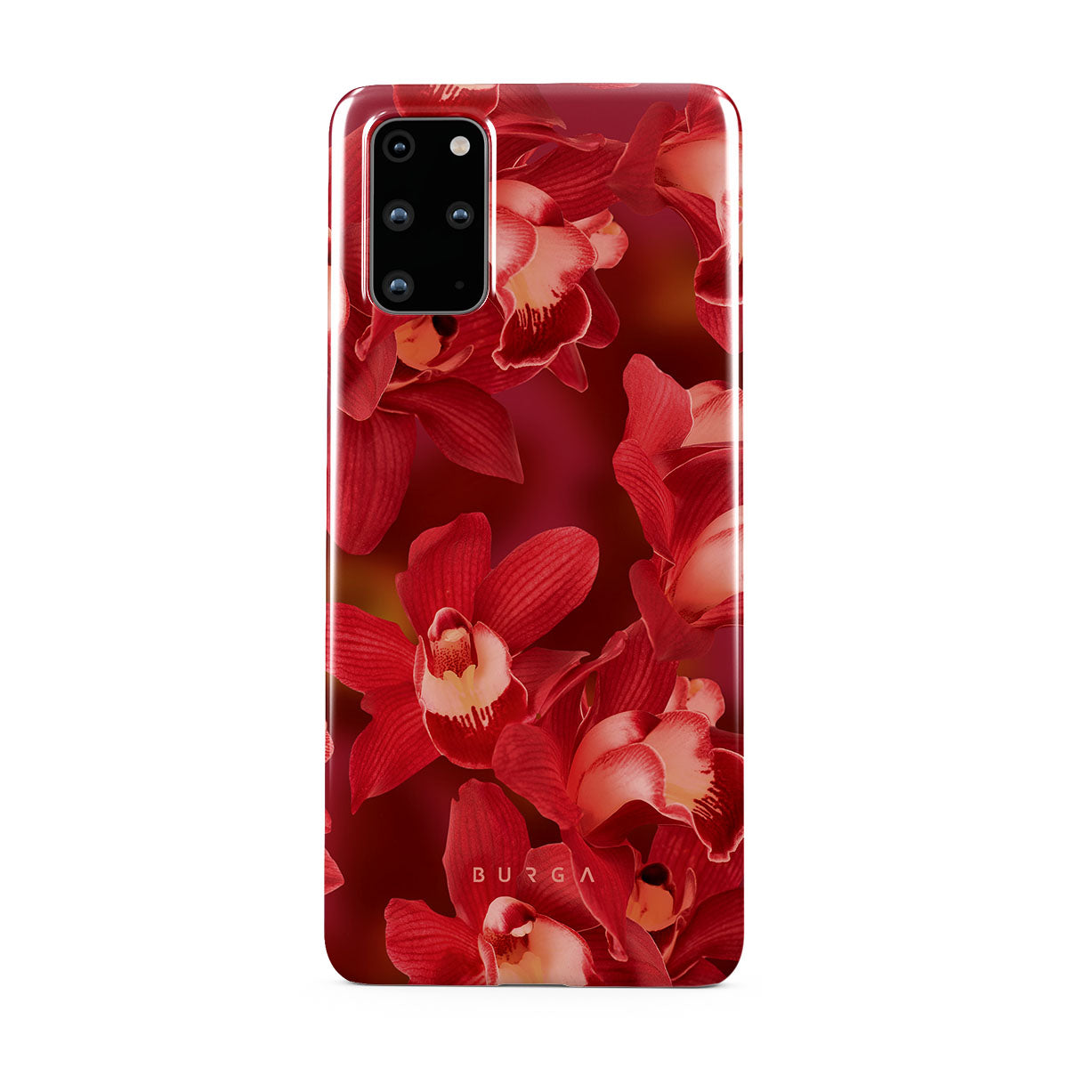 The deep red orchids emerge with a passionate intensity, evoking the fervor and depth of emotions that come with fully experiencing life. They are a vibrant call to embrace every heartbeat, to live deeply and love boldly. Discover the Goddess Energy Samsung Galaxy S20 Plus 4G / 5G phone case design.