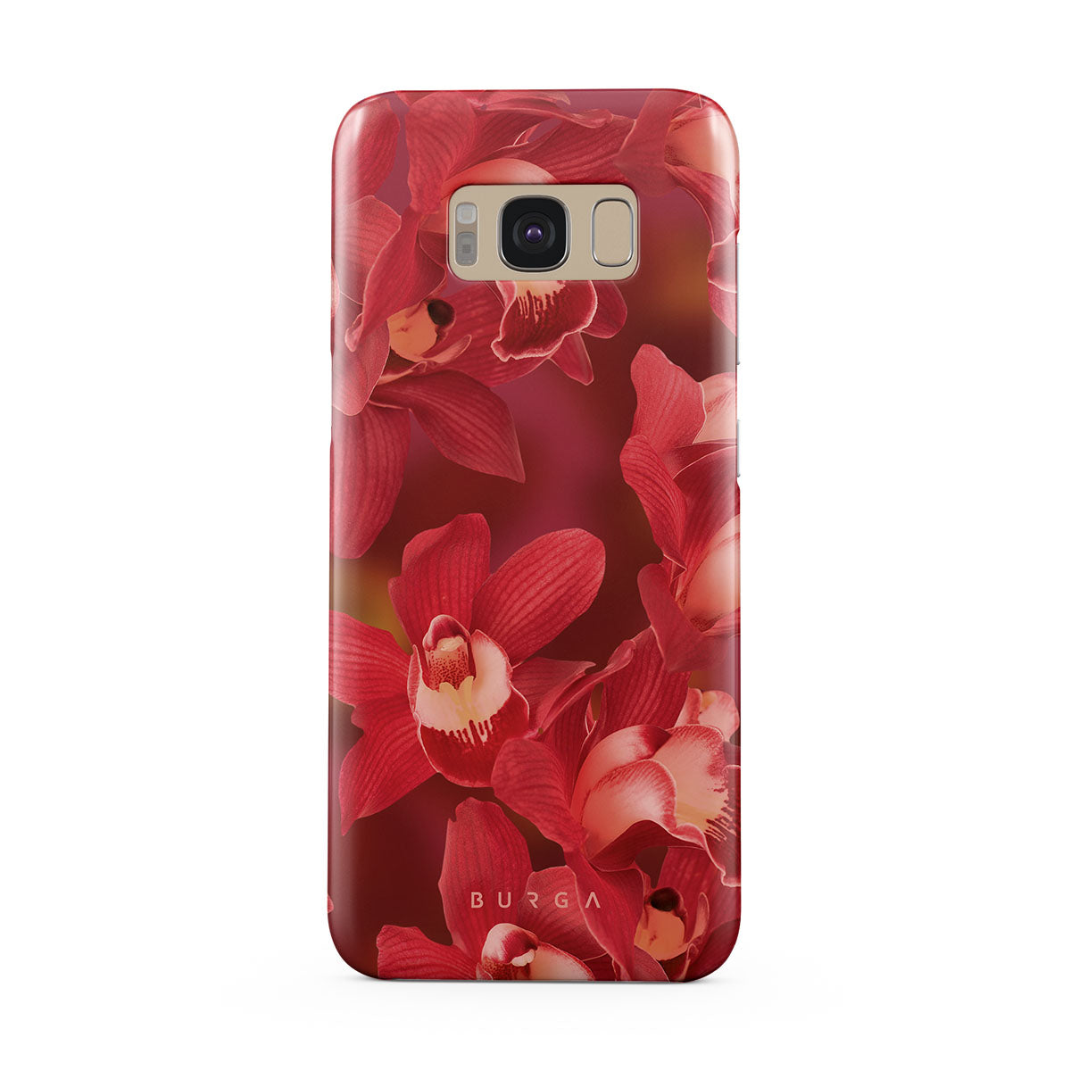The deep red orchids emerge with a passionate intensity, evoking the fervor and depth of emotions that come with fully experiencing life. They are a vibrant call to embrace every heartbeat, to live deeply and love boldly. Discover the Goddess Energy Samsung Galaxy S8 phone case design.