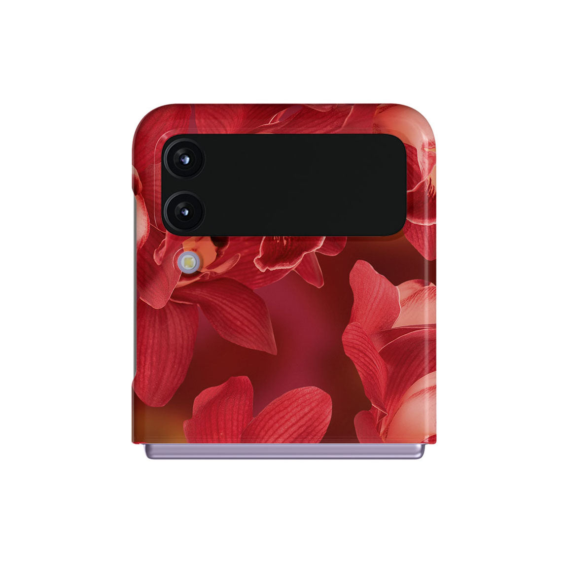 The deep red orchids emerge with a passionate intensity, evoking the fervor and depth of emotions that come with fully experiencing life. They are a vibrant call to embrace every heartbeat, to live deeply and love boldly. Discover the Goddess Energy Samsung Galaxy Z Flip 4 phone case design.