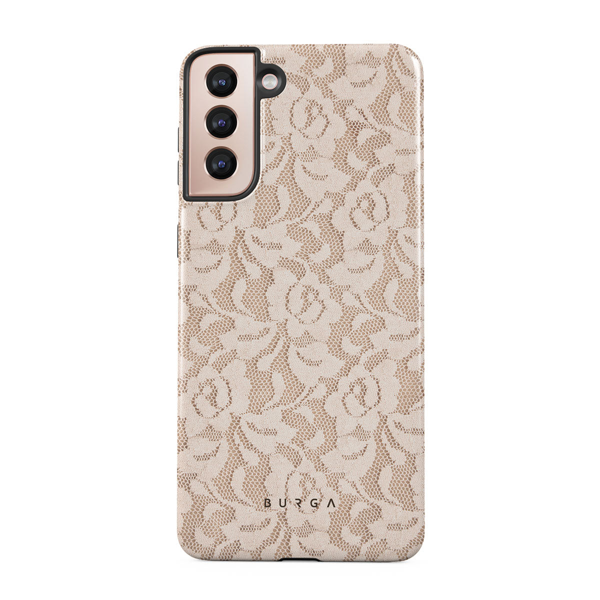 Step into a world of vintage sophistication with the Gone Country Samsung Galaxy S21 Plus phone case. Featuring an intricate neutral lace pattern, this design exudes grace and refinement. It's a tribute to the elegant side of country life—ideal for those who love to keep things classy.