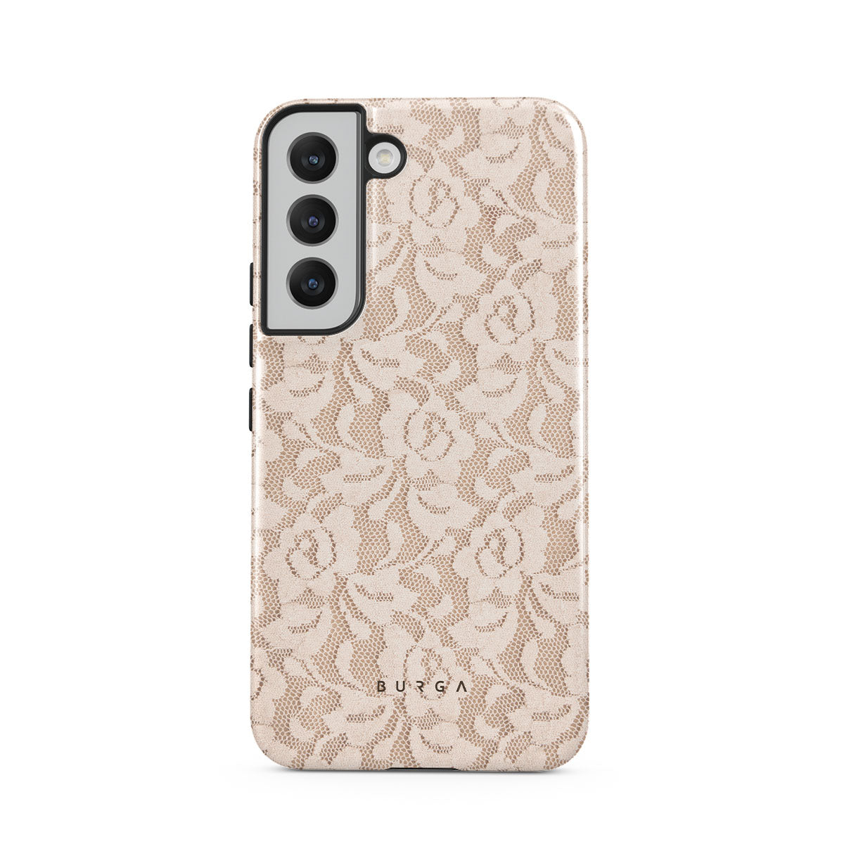 Step into a world of vintage sophistication with the Gone Country Samsung Galaxy S22 Plus phone case. Featuring an intricate neutral lace pattern, this design exudes grace and refinement. It's a tribute to the elegant side of country life—ideal for those who love to keep things classy.