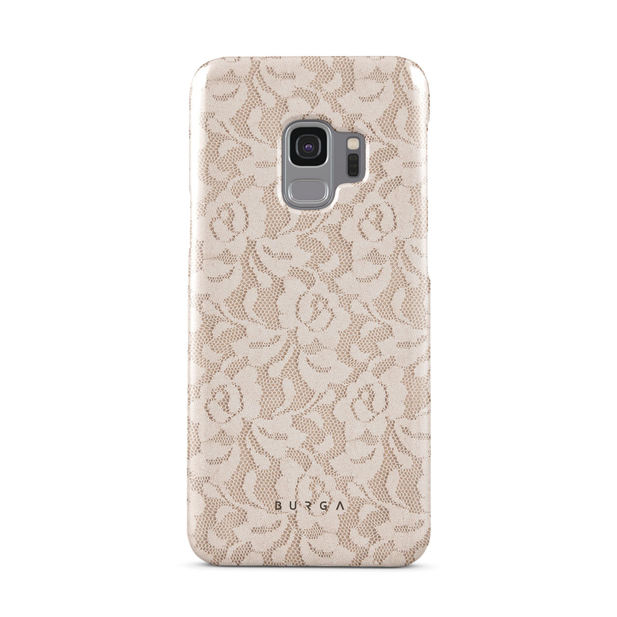 Step into a world of vintage sophistication with the Gone Country Samsung Galaxy S9 phone case. Featuring an intricate neutral lace pattern, this design exudes grace and refinement. It's a tribute to the elegant side of country life—ideal for those who love to keep things classy.