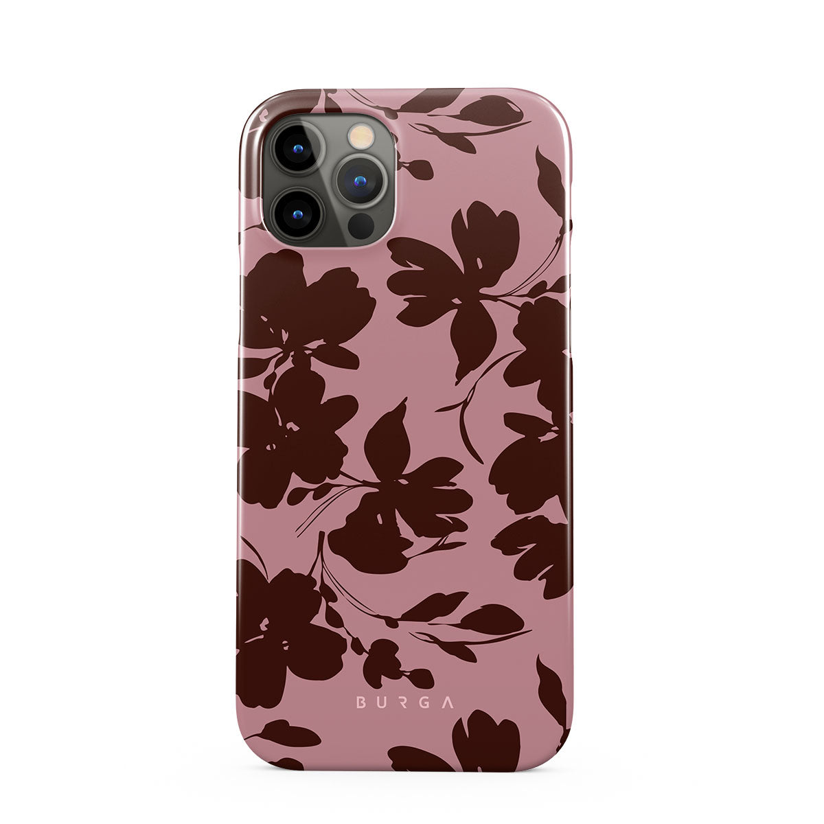 Quietly bold, our Gossip iPhone 12 Pro Max phone case design speaks volumes in subtlety. A soft rosé background, layered with deep red-brown floral accents, gives off a refined, almost mysterious vibe. It's for those who let the details do the talking.