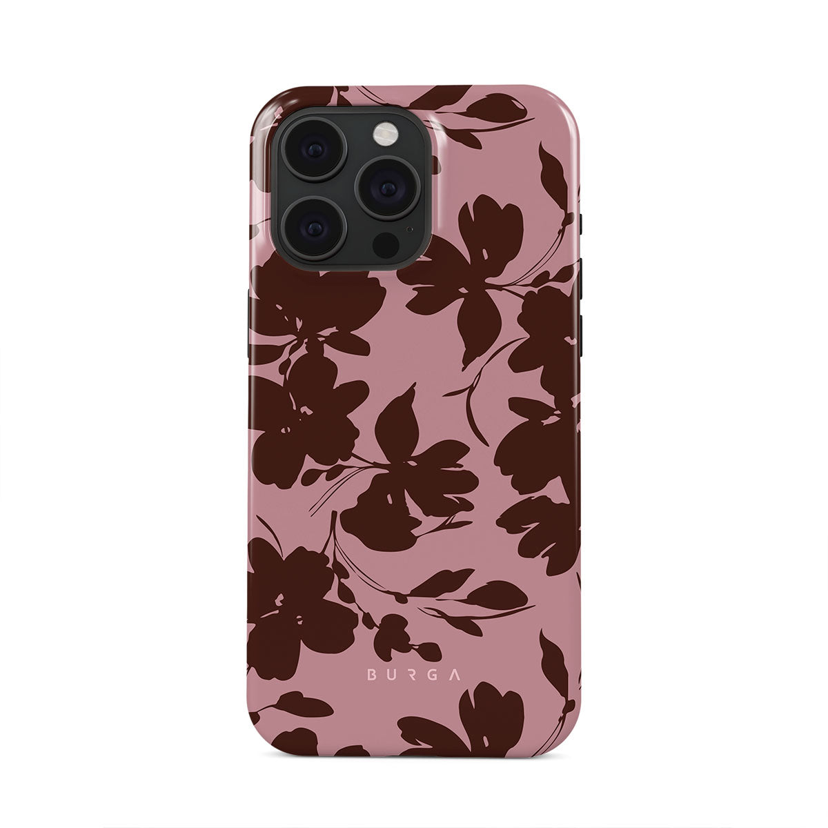 Quietly bold, our Gossip iPhone 15 Pro phone case design speaks volumes in subtlety. A soft rosé background, layered with deep red-brown floral accents, gives off a refined, almost mysterious vibe. It's for those who let the details do the talking.