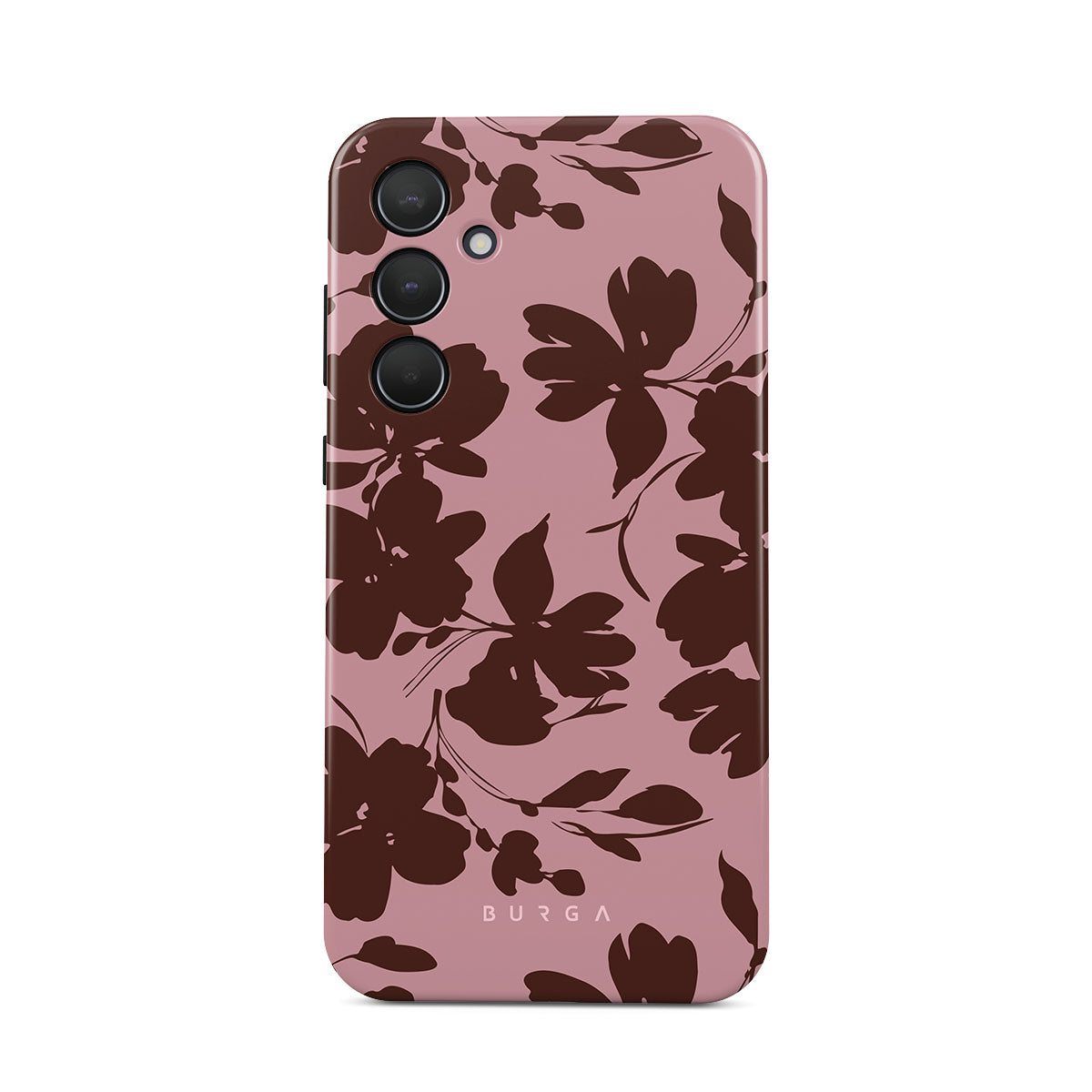 Quietly bold, our Gossip Samsung Galaxy A35 phone case design speaks volumes in subtlety. A soft rosé background, layered with deep red-brown floral accents, gives off a refined, almost mysterious vibe. It's for those who let the details do the talking.