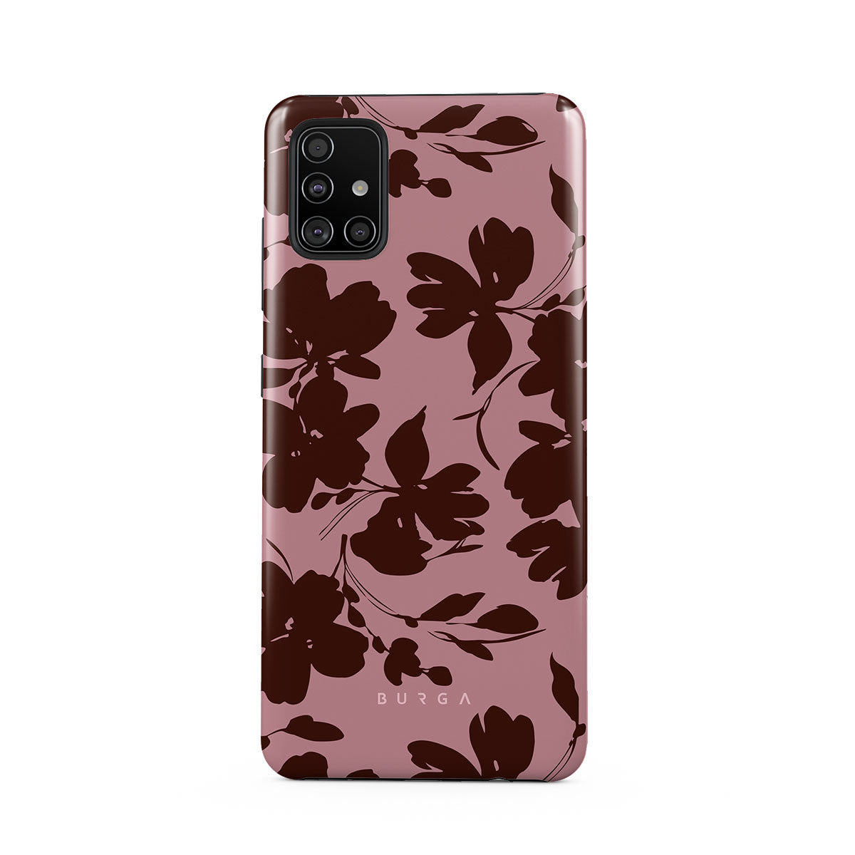 Quietly bold, our Gossip Samsung Galaxy A51 4G phone case design speaks volumes in subtlety. A soft rosé background, layered with deep red-brown floral accents, gives off a refined, almost mysterious vibe. It's for those who let the details do the talking.