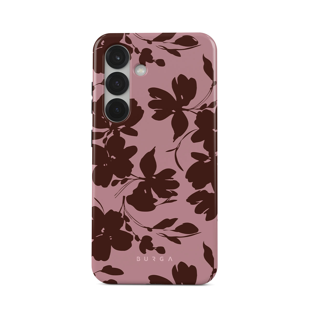 Quietly bold, our Gossip Samsung Galaxy S25 Plus phone case design speaks volumes in subtlety. A soft rosé background, layered with deep red-brown floral accents, gives off a refined, almost mysterious vibe. It's for those who let the details do the talking.
