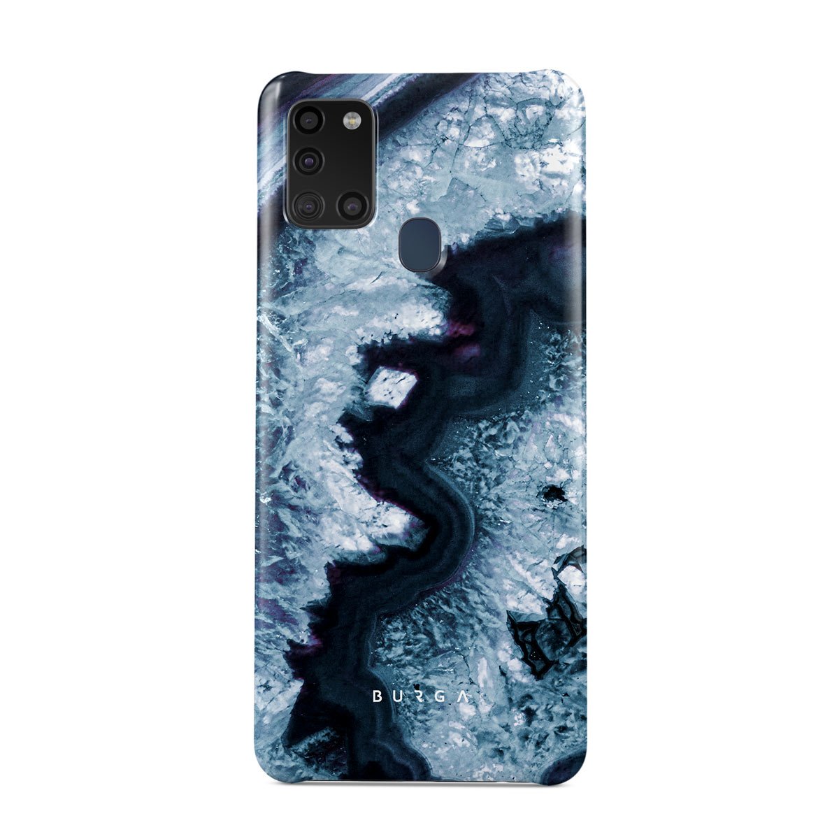 The gray marble pattern of our hard-shell Samsung Galaxy A21s 4G phone case inspired by the frozen lake adds a dreamy cool-toned blue color that is sure to become a hit in everyone's style. Frost-inspired gray marble swirls look enchanting while protecting your cellphone.