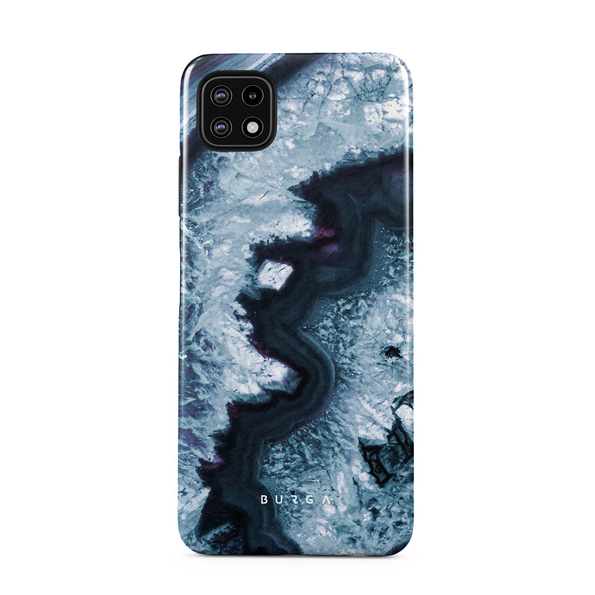 The gray marble pattern of our hard-shell Samsung Galaxy A22 5G phone case inspired by the frozen lake adds a dreamy cool-toned blue color that is sure to become a hit in everyone's style. Frost-inspired gray marble swirls look enchanting while protecting your cellphone.