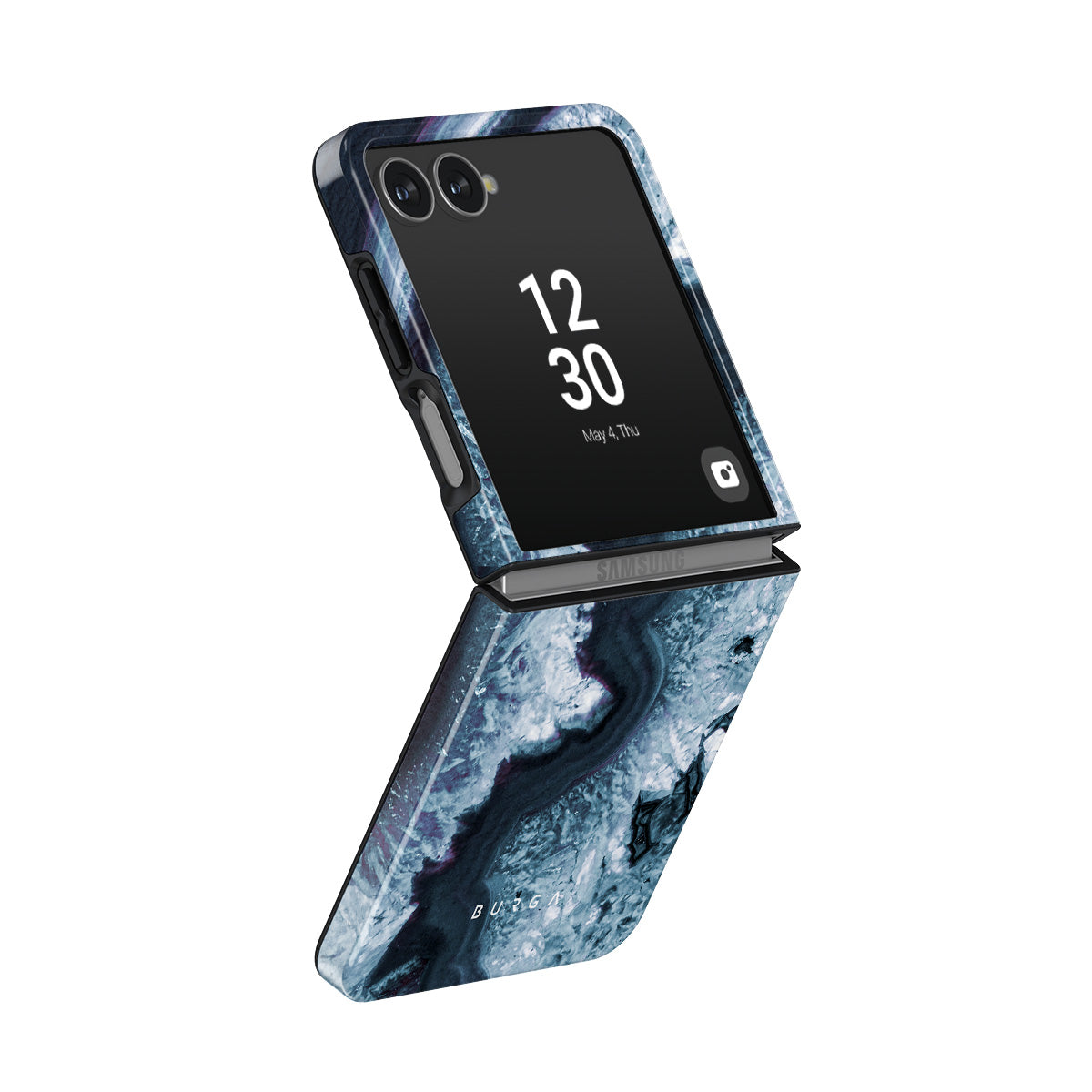 The gray marble pattern of our hard-shell Samsung Galaxy Z Flip 7 phone case inspired by the frozen lake adds a dreamy cool-toned blue color that is sure to become a hit in everyone's style. Frost-inspired gray marble swirls look enchanting while protecting your cellphone.
