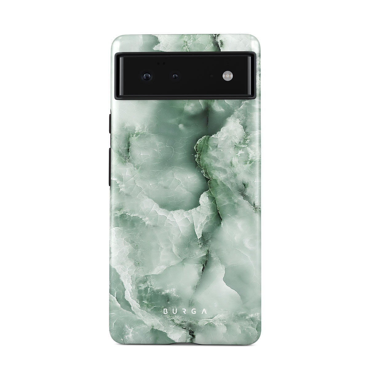 Our Pistachio Cheesecake Google Pixel 6a phone case is inspired by the soft green color of pistachios. The marble pattern never goes out of style, and reimagined design with pastel green and white swirls offers a designer feel. Such a hard-shell case will provide heavy-duty protection while adding a touch of pastel to your collection.