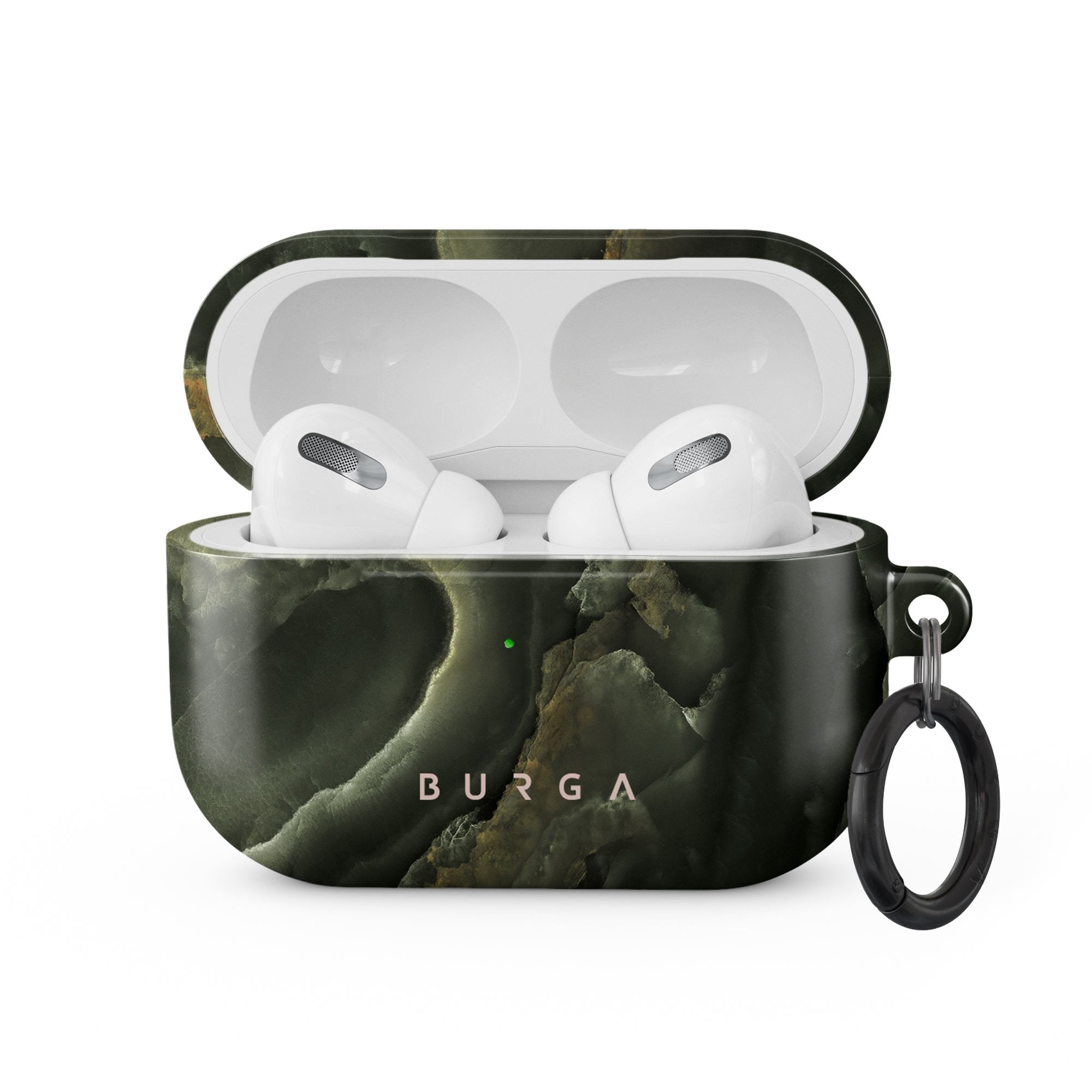 The Misty Forest Apple Airpods Pro case cover combines several deep green shades into a green marble dream, making y Our case stand and become a fashion piece instead of just being your usual and boring protective case. Our case fits perfectly snug around Apple Airpods Pro . “Like a glove!” one might say. And it won’t disrupt the wireless charging capabilities of the newer model. There’s even an LED light indicator to prove it (don’t worry, wired charging still works, too). When fitted, the BURGA case will protect the delicate Apple Airpods Pro case beneath it from scratches, bumps, and drops while remaining scratch-free itself. Our signature design pattern prints are High Quality, and will never peel or fade away- thanks to our unique printing technology. And finally, a handy carabiner is there to make your life easier and more convenient: just snap it around your keys or belt loop and tackle the day head-on. Your music is right there by your side when you need it.