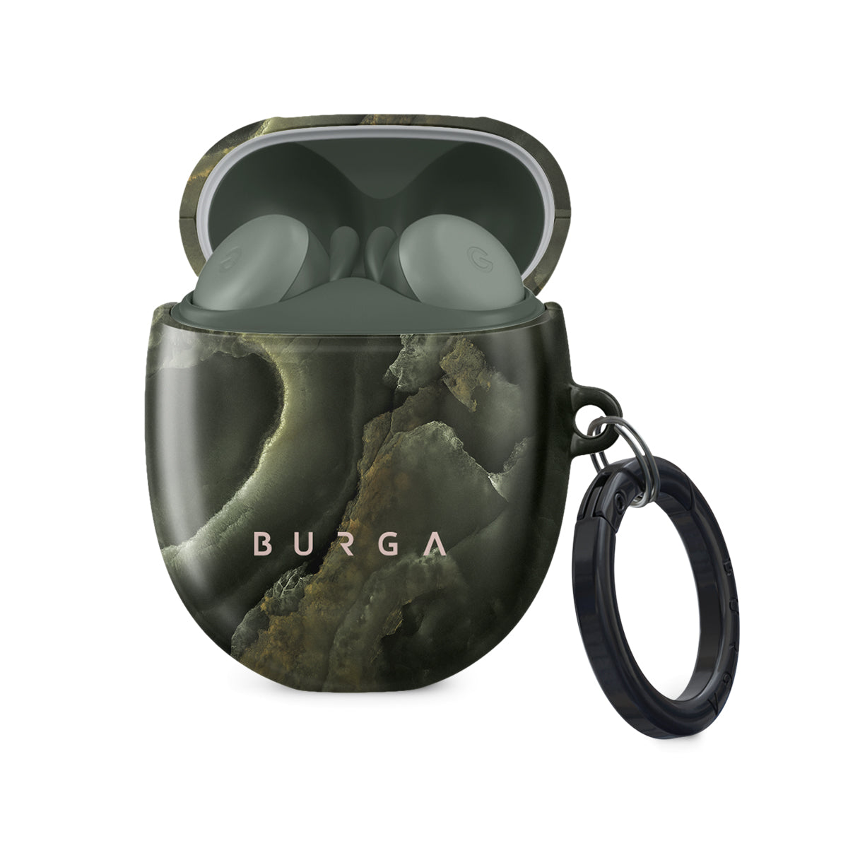 The Misty Forest Google Pixel Buds A case cover combines several deep green shades into a green marble dream, making y Our case stand and become a fashion piece instead of just being your usual and boring protective case. Our case fits perfectly snug around Google Pixel Buds A . “Like a glove!” one might say. And it won’t disrupt the wireless charging capabilities of the newer model. There’s even an LED light indicator to prove it (don’t worry, wired charging still works, too). When fitted, the BURGA case will protect the delicate Google Pixel Buds A case beneath it from scratches, bumps, and drops while remaining scratch-free itself. Our signature design pattern prints are High Quality, and will never peel or fade away- thanks to our unique printing technology. And finally, a handy carabiner is there to make your life easier and more convenient: just snap it around your keys or belt loop and tackle the day head-on. Your music is right there by your side when you need it.