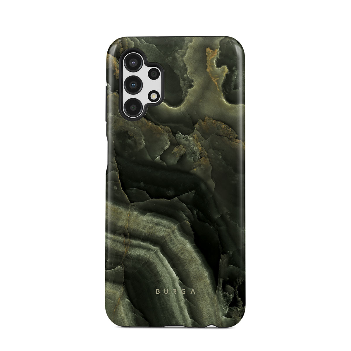 Carry the mystery of unexplored land found in an ominous misty forest with a green marble Samsung Galaxy A13 4G phone case inspired by it. The case combines the popular marble trend with heavy-duty protection becoming a unique companion to your device.