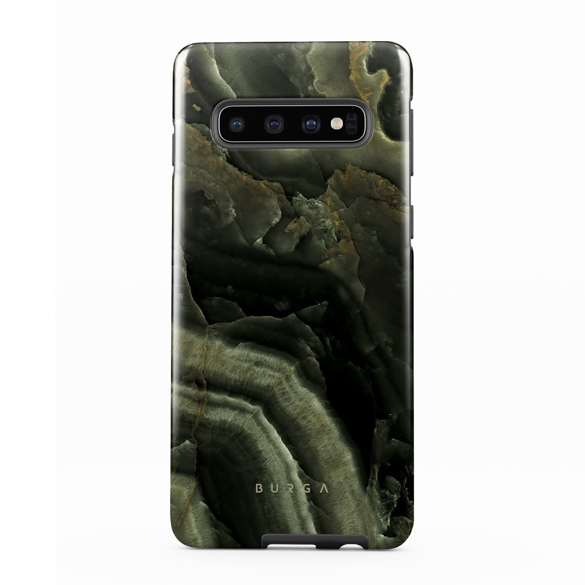 Carry the mystery of unexplored land found in an ominous misty forest with a green marble Samsung Galaxy S10 phone case inspired by it. The case combines the popular marble trend with heavy-duty protection becoming a unique companion to your device.