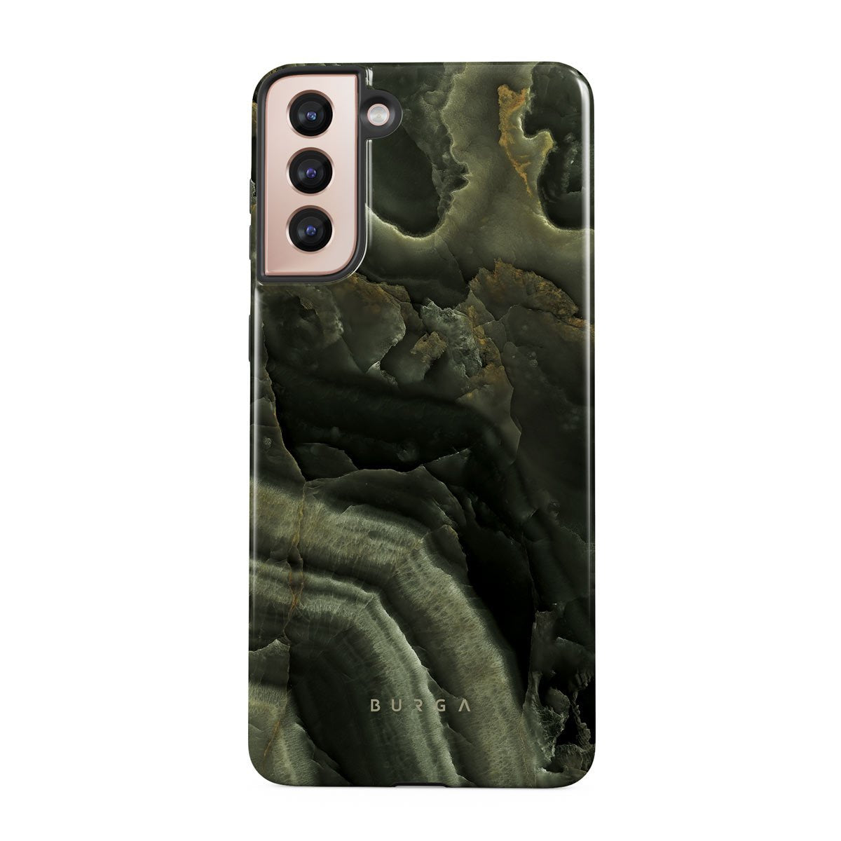 Carry the mystery of unexplored land found in an ominous misty forest with a green marble Samsung Galaxy S21 Plus phone case inspired by it. The case combines the popular marble trend with heavy-duty protection becoming a unique companion to your device.
