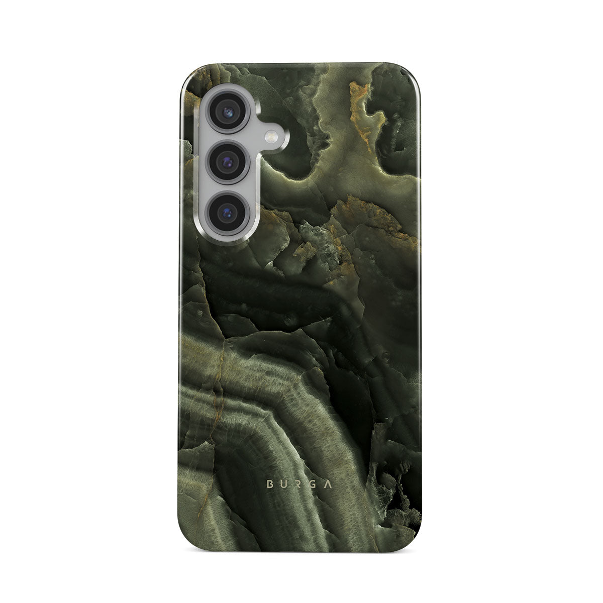 Carry the mystery of unexplored land found in an ominous misty forest with a green marble Samsung Galaxy S24 phone case inspired by it. The case combines the popular marble trend with heavy-duty protection becoming a unique companion to your device.