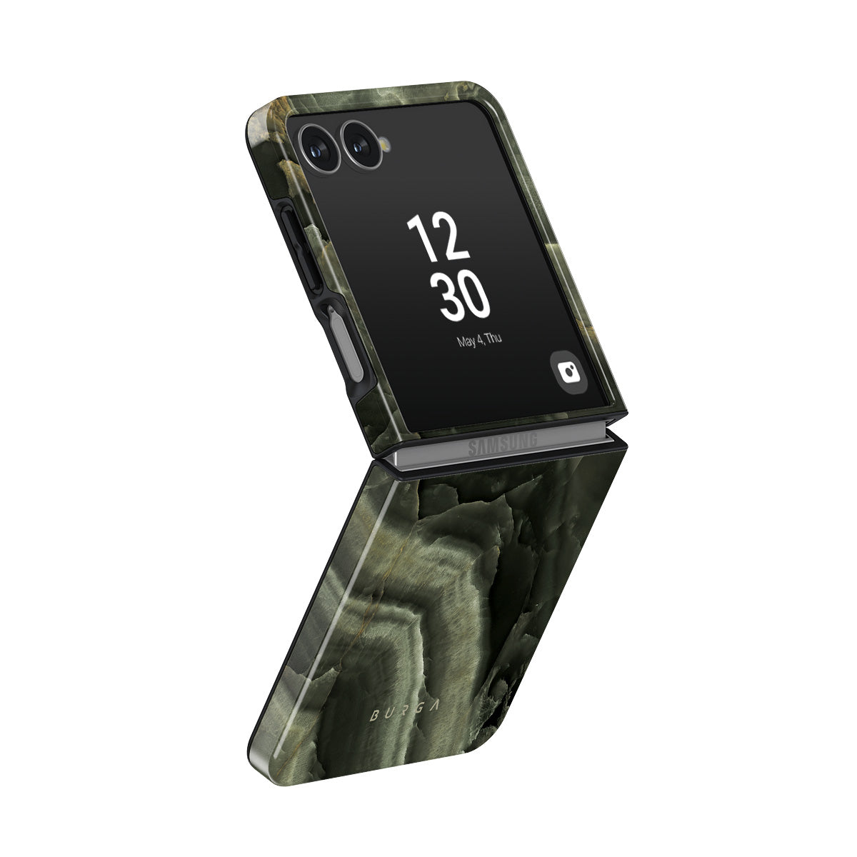 Carry the mystery of unexplored land found in an ominous misty forest with a green marble Samsung Galaxy Z Flip 7 phone case inspired by it. The case combines the popular marble trend with heavy-duty protection becoming a unique companion to your device.
