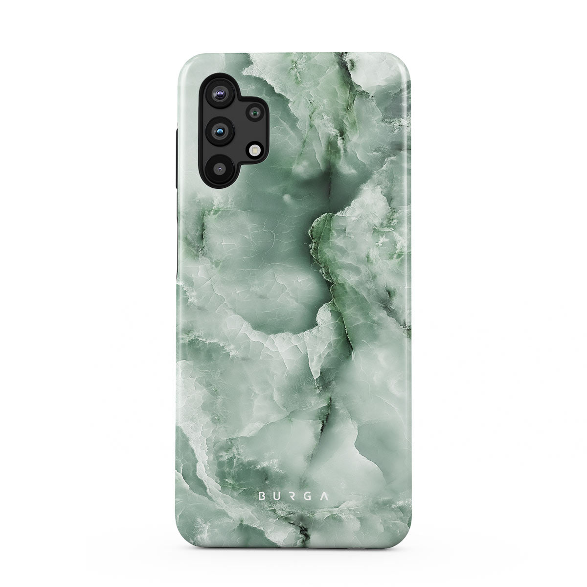 Our Pistachio Cheesecake Samsung Galaxy A32 5G phone case is inspired by the soft green color of pistachios. The marble pattern never goes out of style, and reimagined design with pastel green and white swirls offers a designer feel. Such a hard-shell case will provide heavy-duty protection while adding a touch of pastel to your collection.