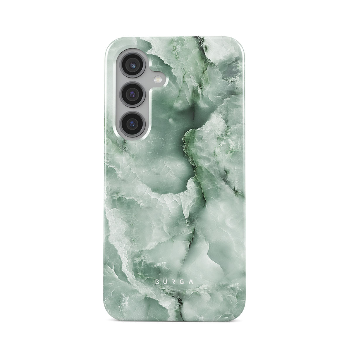 Our Pistachio Cheesecake Samsung Galaxy S24 Plus phone case is inspired by the soft green color of pistachios. The marble pattern never goes out of style, and reimagined design with pastel green and white swirls offers a designer feel. Such a hard-shell case will provide heavy-duty protection while adding a touch of pastel to your collection.