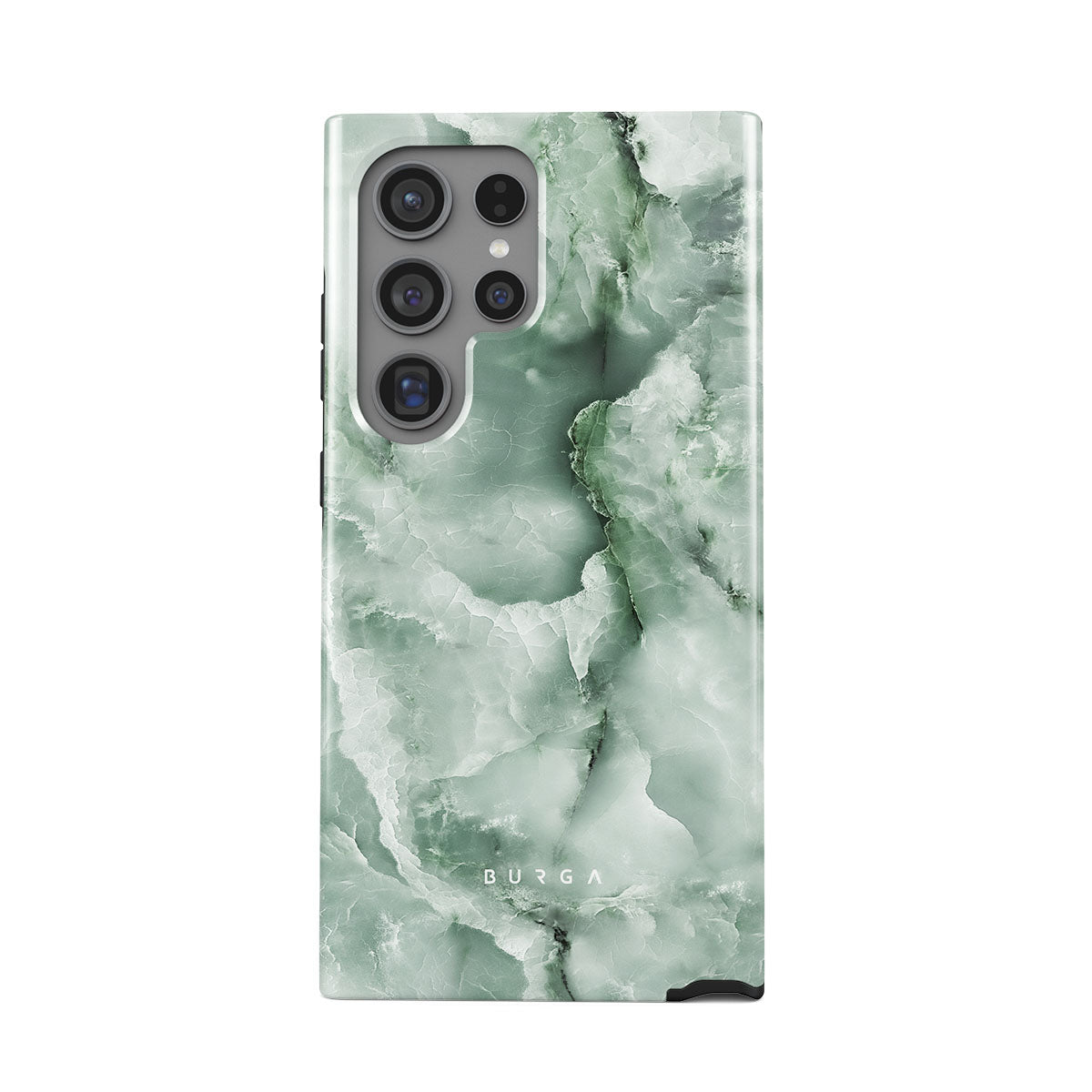Our Pistachio Cheesecake Samsung Galaxy S24 Ultra phone case is inspired by the soft green color of pistachios. The marble pattern never goes out of style, and reimagined design with pastel green and white swirls offers a designer feel. Such a hard-shell case will provide heavy-duty protection while adding a touch of pastel to your collection.
