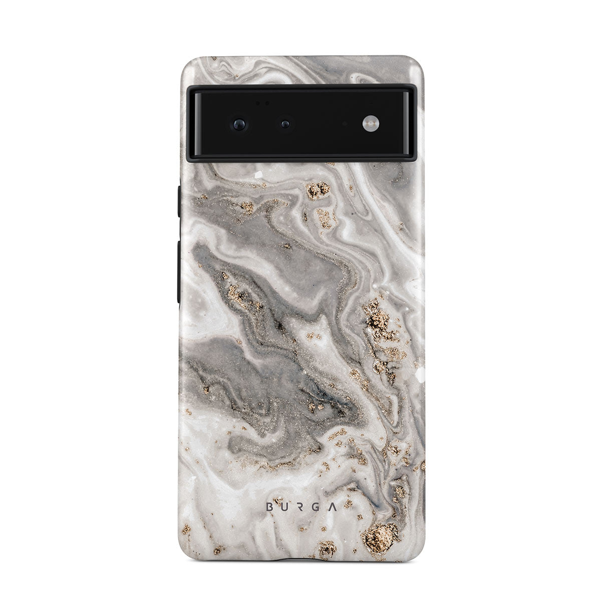 The wind outside is playing his songs. Some fear, some love, and some simply enjoy. But do not be afraid, with our grey marble Google Pixel 6 phone case inspired by a beautiful snowstorm, you can have the pretty part of it without any coldness. And as the case offers heavy-duty protection, your phone will also be safe and sound!