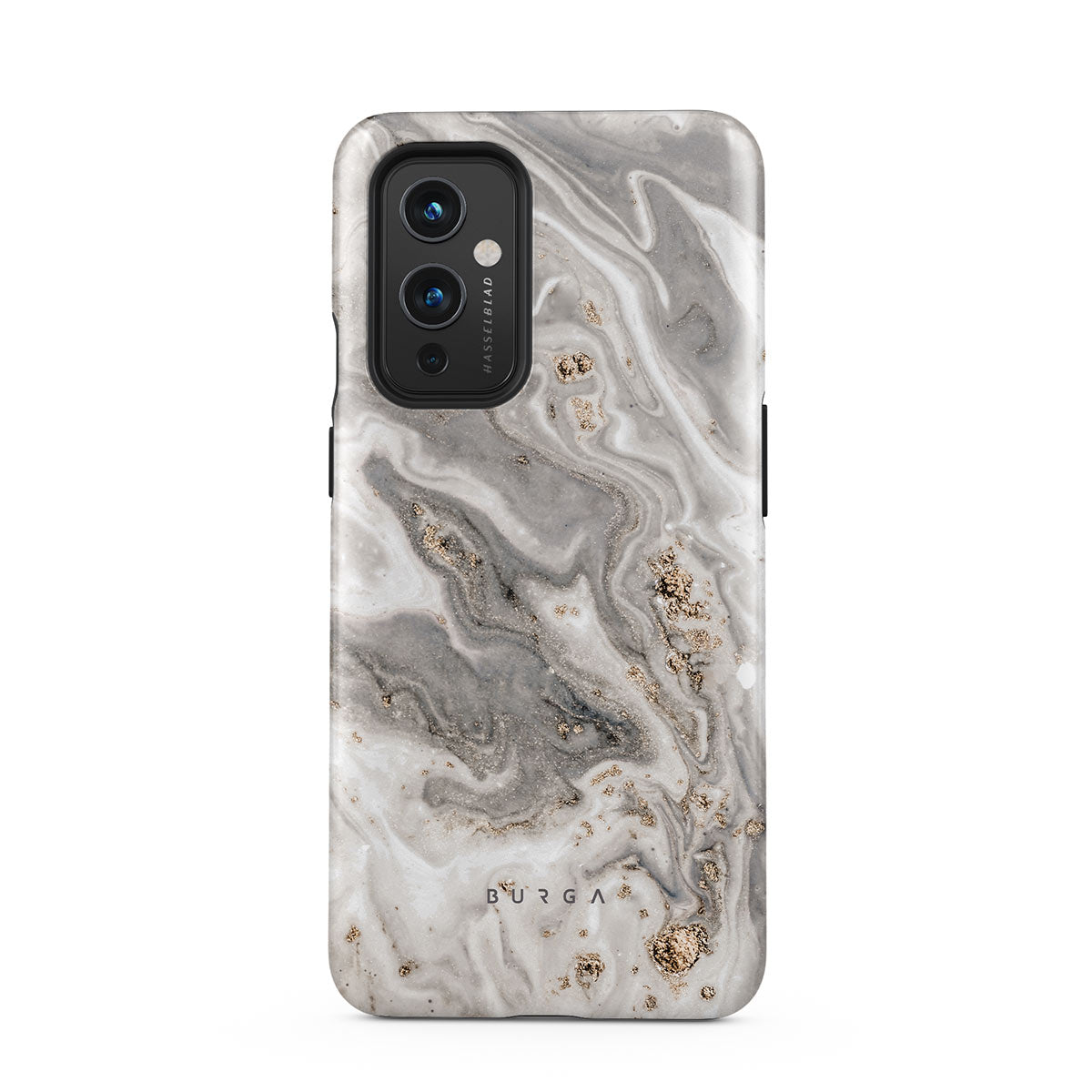 The wind outside is playing his songs. Some fear, some love, and some simply enjoy. But do not be afraid, with our grey marble OnePlus 9 phone case inspired by a beautiful snowstorm, you can have the pretty part of it without any coldness. And as the case offers heavy-duty protection, your phone will also be safe and sound!