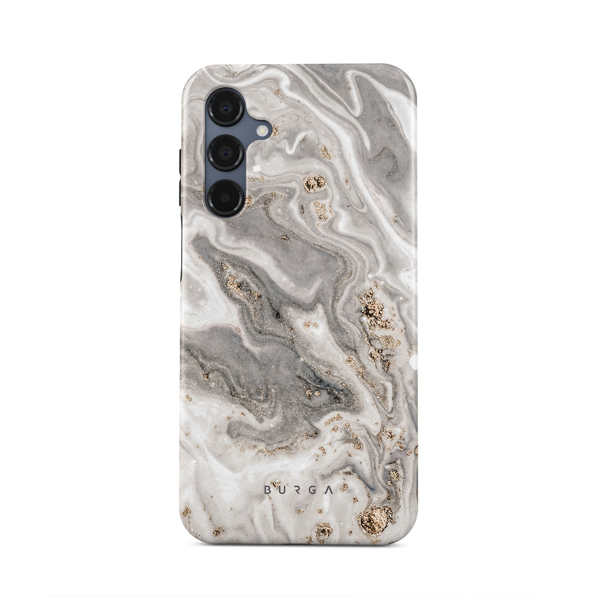 The wind outside is playing his songs. Some fear, some love, and some simply enjoy. But do not be afraid, with our grey marble Samsung Galaxy A16 phone case inspired by a beautiful snowstorm, you can have the pretty part of it without any coldness. And as the case offers heavy-duty protection, your phone will also be safe and sound!