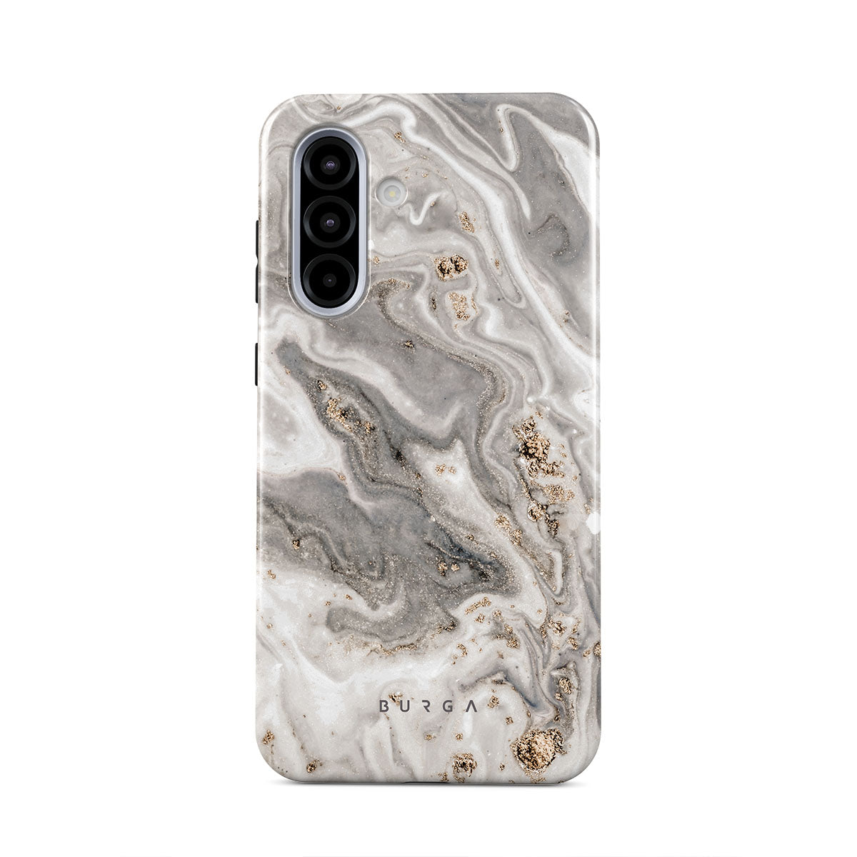 The wind outside is playing his songs. Some fear, some love, and some simply enjoy. But do not be afraid, with our grey marble Samsung Galaxy A56 5G phone case inspired by a beautiful snowstorm, you can have the pretty part of it without any coldness. And as the case offers heavy-duty protection, your phone will also be safe and sound!