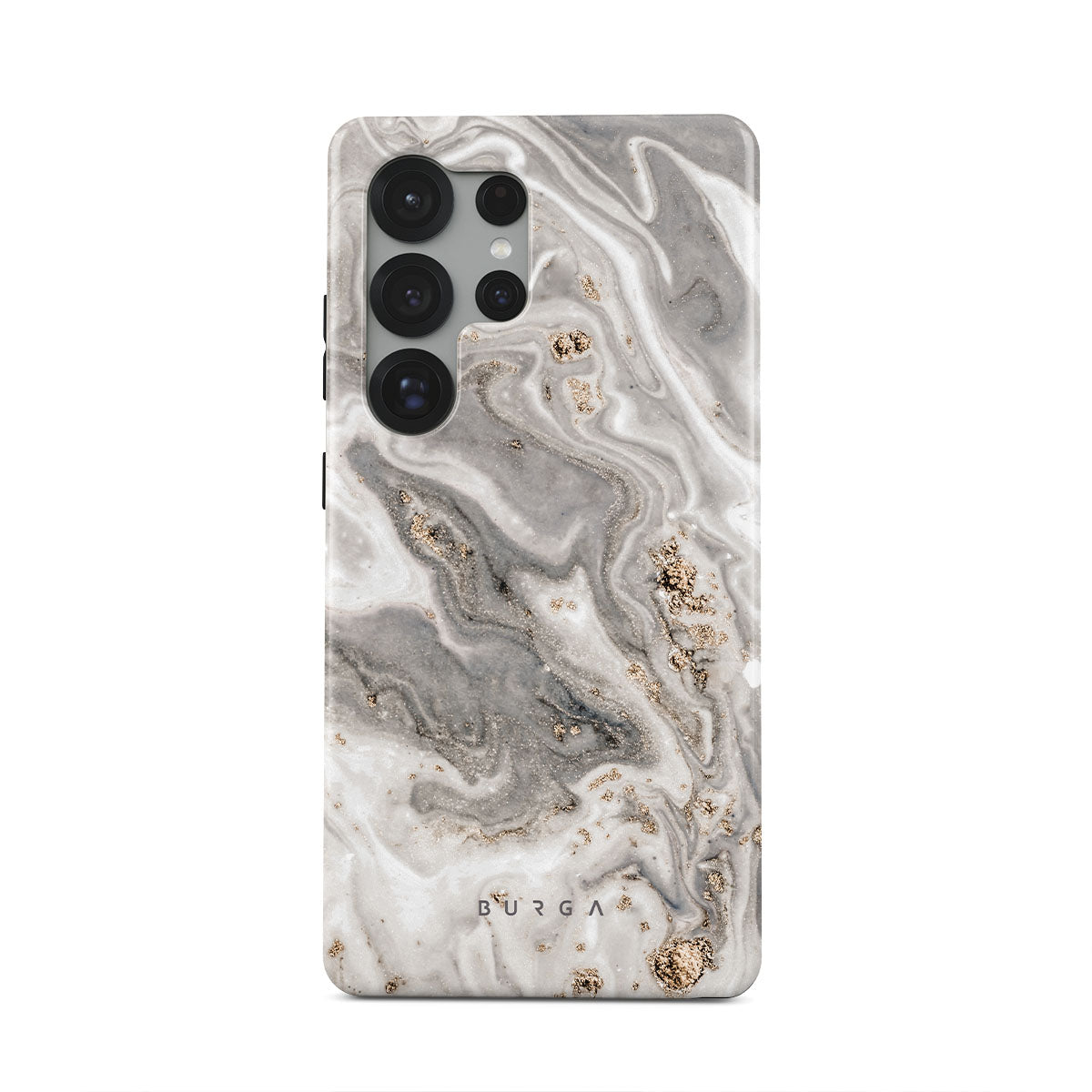 The wind outside is playing his songs. Some fear, some love, and some simply enjoy. But do not be afraid, with our grey marble Samsung Galaxy S25 Ultra phone case inspired by a beautiful snowstorm, you can have the pretty part of it without any coldness. And as the case offers heavy-duty protection, your phone will also be safe and sound!