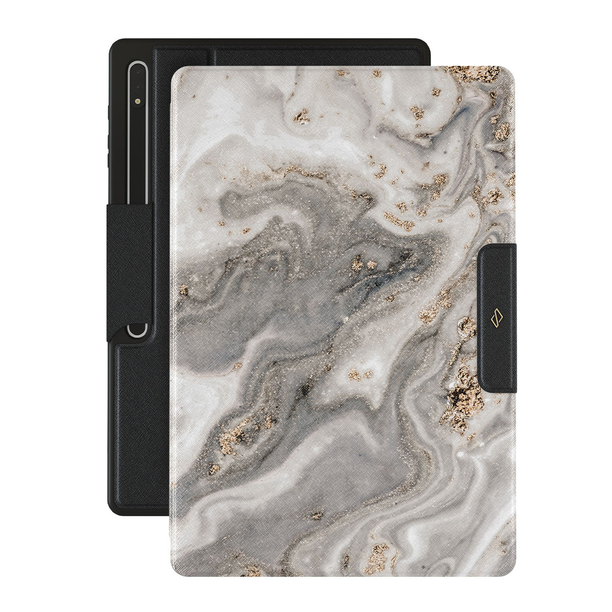 The wind outside is playing his songs. Some fear, some love, and some simply enjoy. But do not be afraid, with our grey marble Samsung Galaxy Tab S8 Ultra folio case inspired by a beautiful snowstorm, you can have the pretty part of it without any coldness. And as the case offers heavy-duty protection, your Galaxy Tab will also be safe and sound!