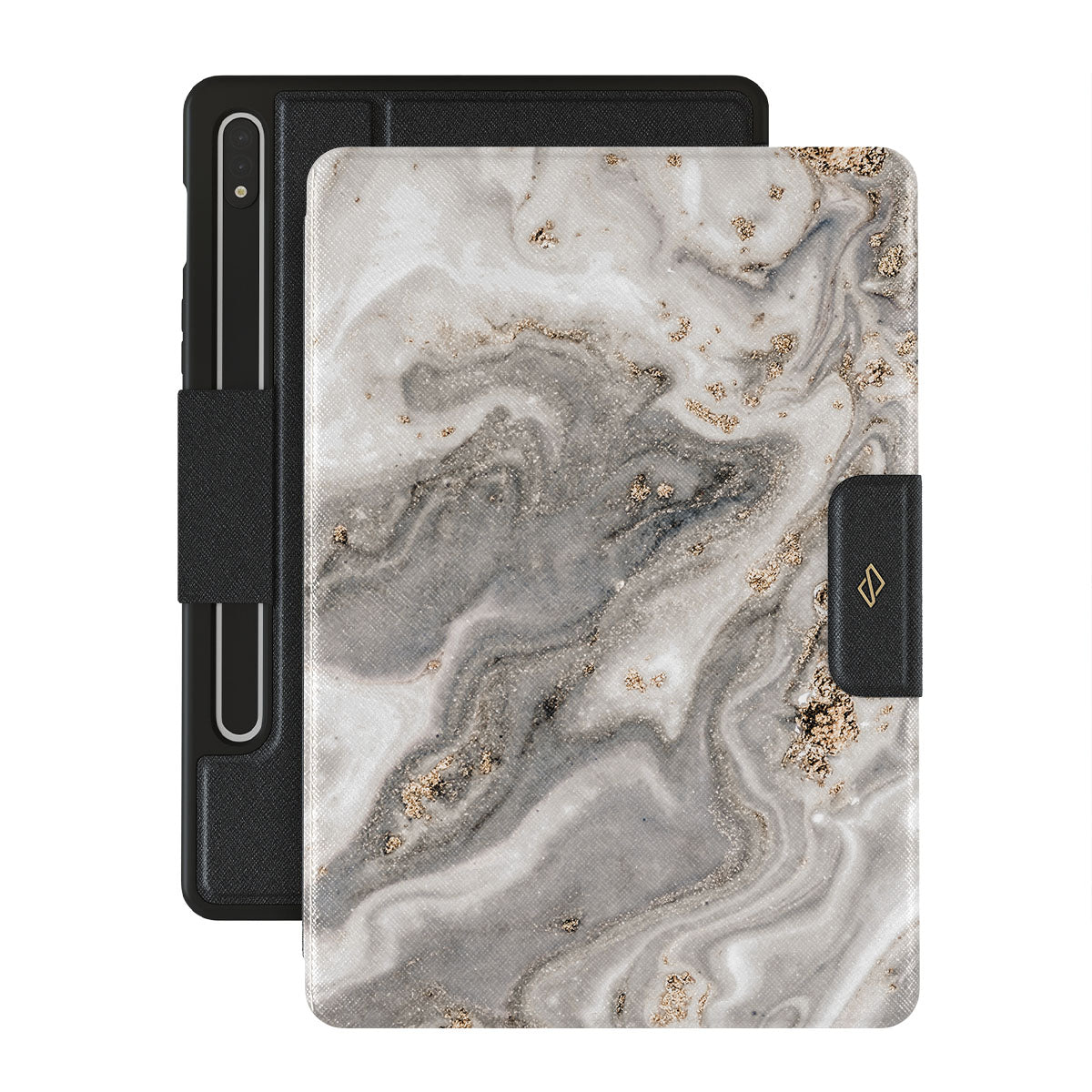 The wind outside is playing his songs. Some fear, some love, and some simply enjoy. But do not be afraid, with our grey marble Samsung Galaxy Tab S9 FE folio case inspired by a beautiful snowstorm, you can have the pretty part of it without any coldness. And as the case offers heavy-duty protection, your Galaxy Tab will also be safe and sound!