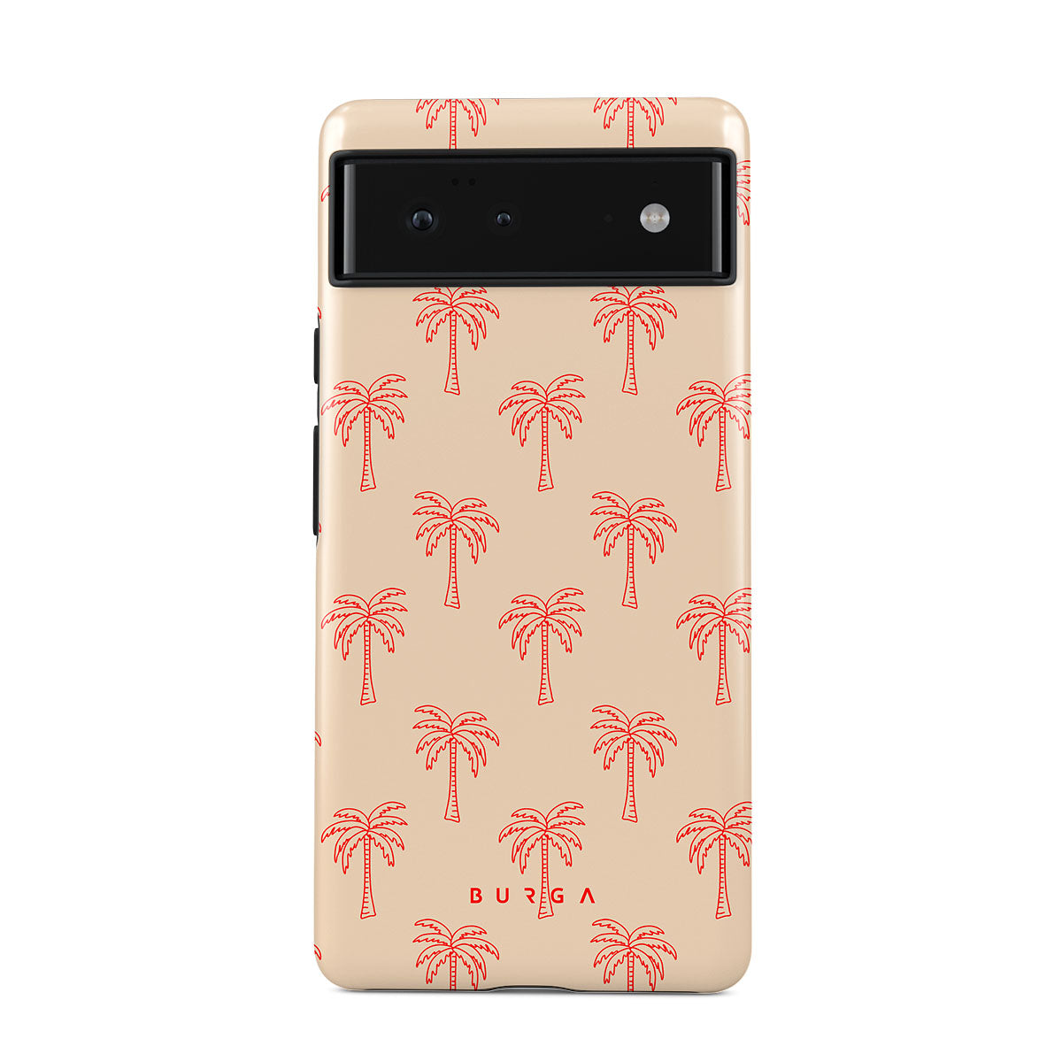 Retreat into the serene whispers of our Happy Hour design. Gentle pink palms sway on a soothing blush background, creating images of a tranquil paradise. This Google Pixel 6a phone case is perfect for dreamers and nature lovers who seek a daily escape into tranquility.
