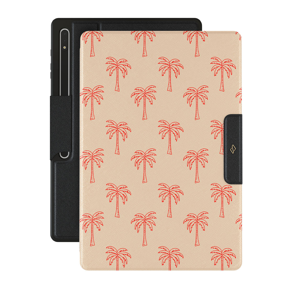 Retreat into the serene whispers of our Happy Hour design. Gentle pink palms sway on a soothing blush background, creating images of a tranquil paradise. This Samsung Galaxy Tab S8 Ultra folio case is perfect for dreamers and nature lovers who seek a daily escape into tranquility.