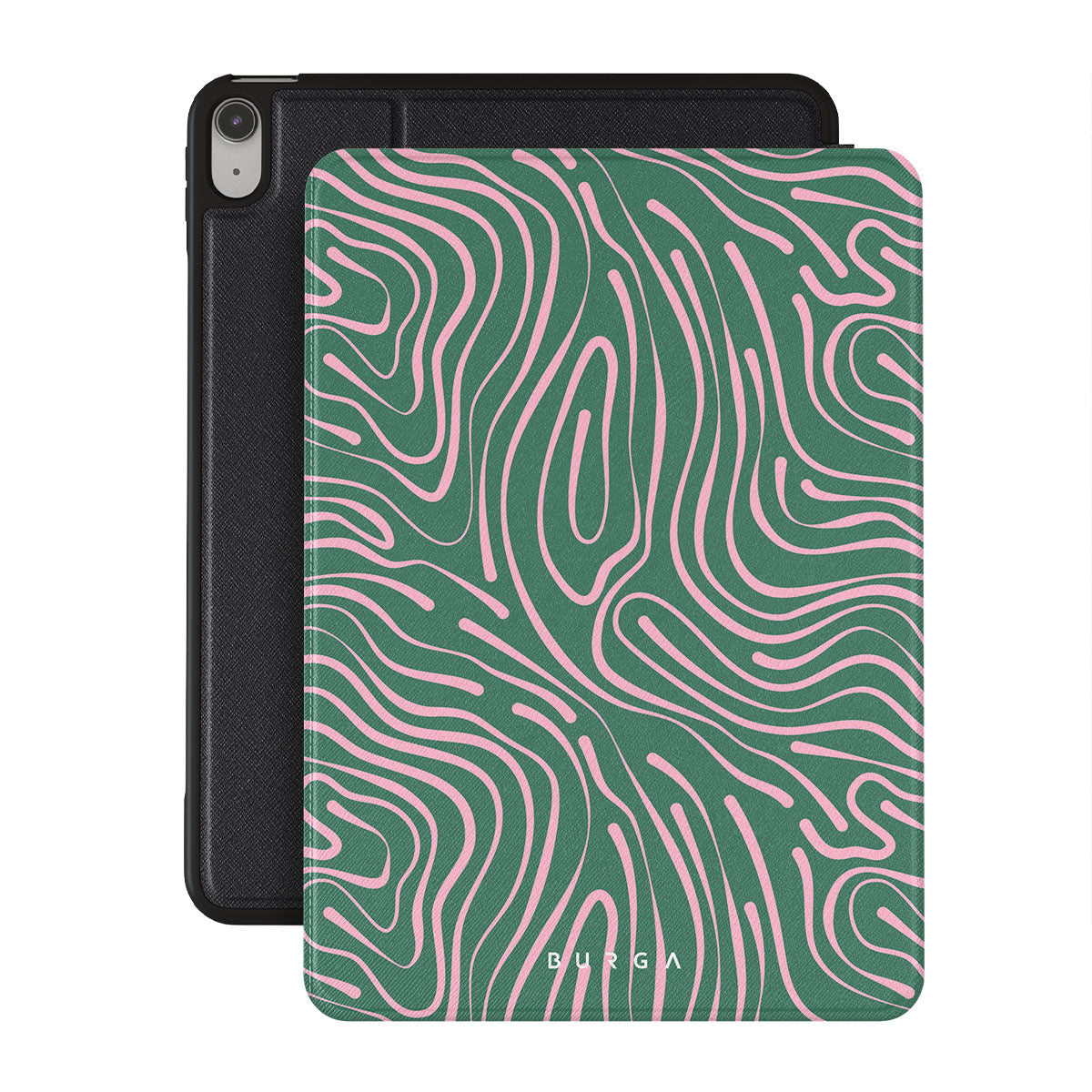 Fresh and mesmerizing, our Hawaiian Breeze iPad 10.9 (A16/10th Gen) folio case design combines a pastel pink wavy pattern with a crisp green background creating a refreshing look. The abstract pattern will indeed become a star in your accessorizing game, while the iPad case will keep your device protected at all times!