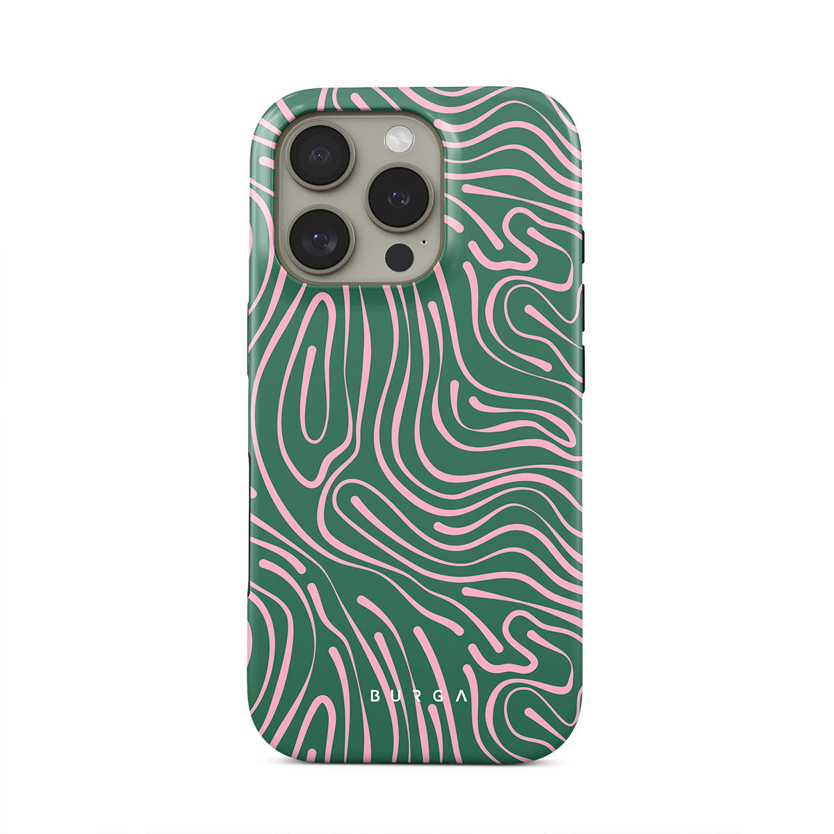 Fresh and mesmerizing, our Hawaiian Breeze iPhone 16 Pro phone case design combines a pastel pink wavy pattern with a crisp green background creating a refreshing look. The abstract pattern will indeed become a star in your accessorizing game, while the phone case will keep your device protected at all times!