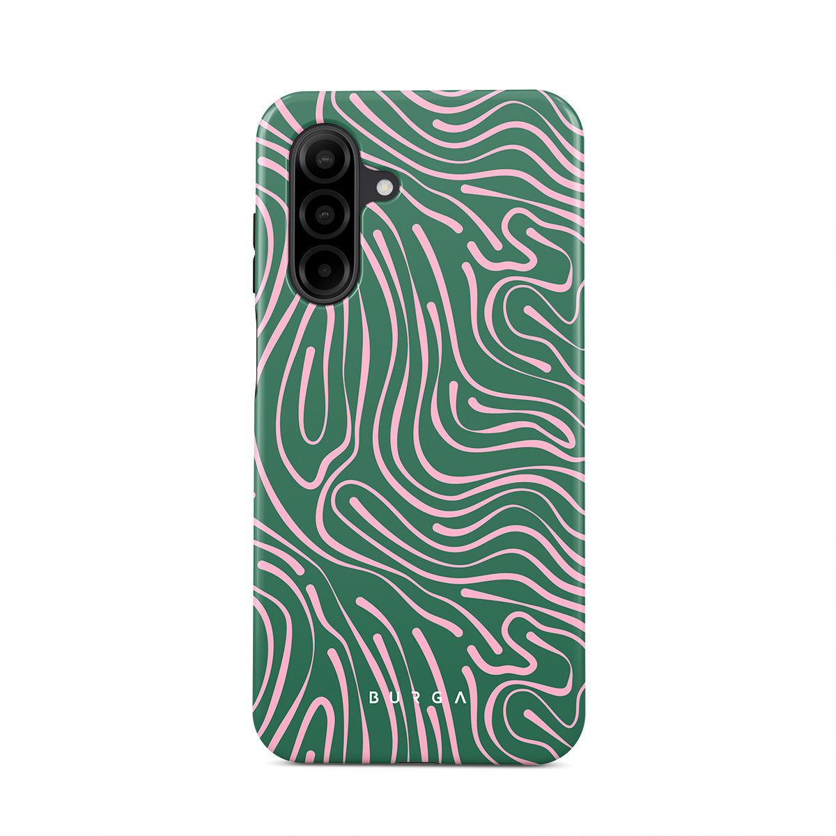 Fresh and mesmerizing, our Hawaiian Breeze Samsung Galaxy A26 5G phone case design combines a pastel pink wavy pattern with a crisp green background creating a refreshing look. The abstract pattern will indeed become a star in your accessorizing game, while the phone case will keep your device protected at all times!