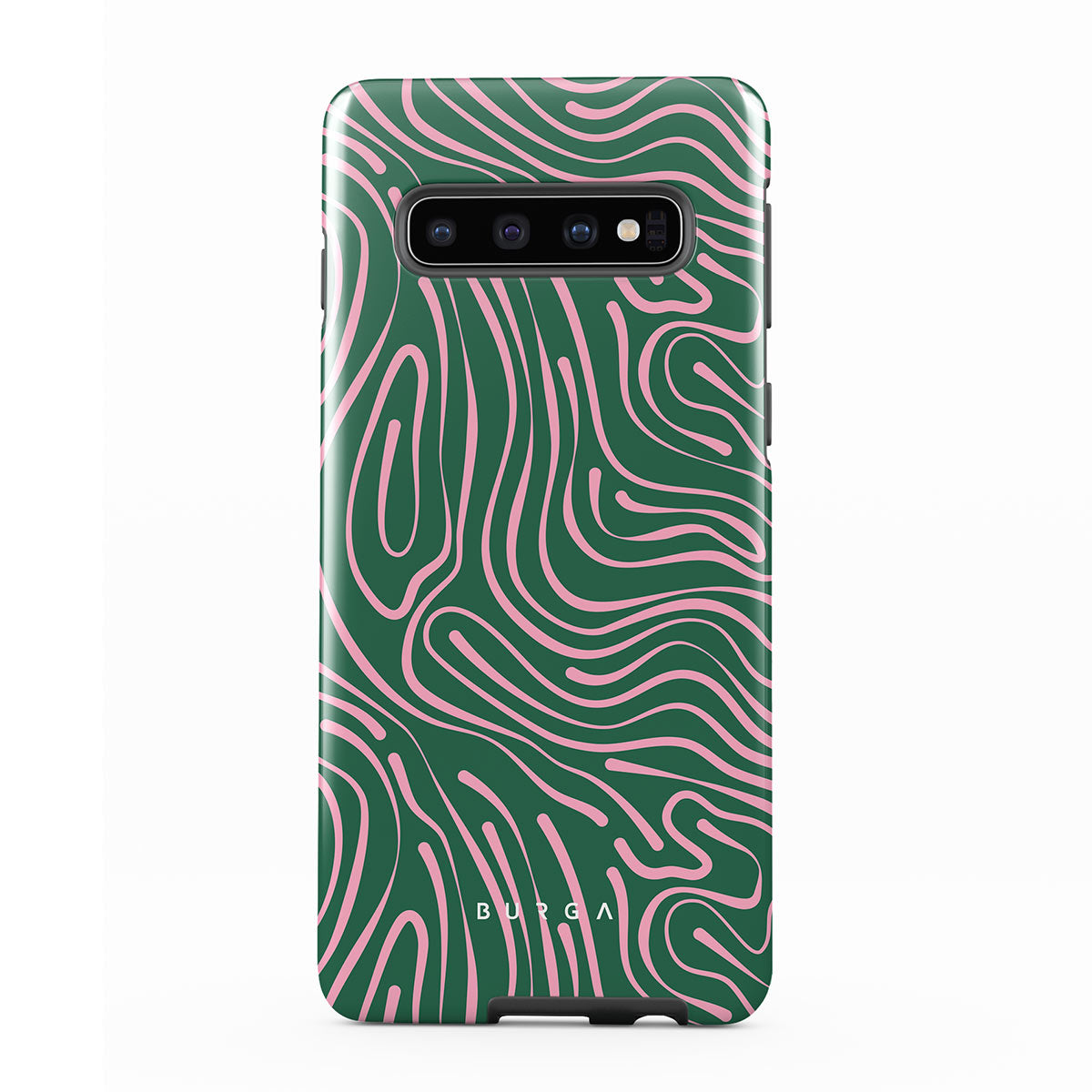 Fresh and mesmerizing, our Hawaiian Breeze Samsung Galaxy S10 4G phone case design combines a pastel pink wavy pattern with a crisp green background creating a refreshing look. The abstract pattern will indeed become a star in your accessorizing game, while the phone case will keep your device protected at all times!