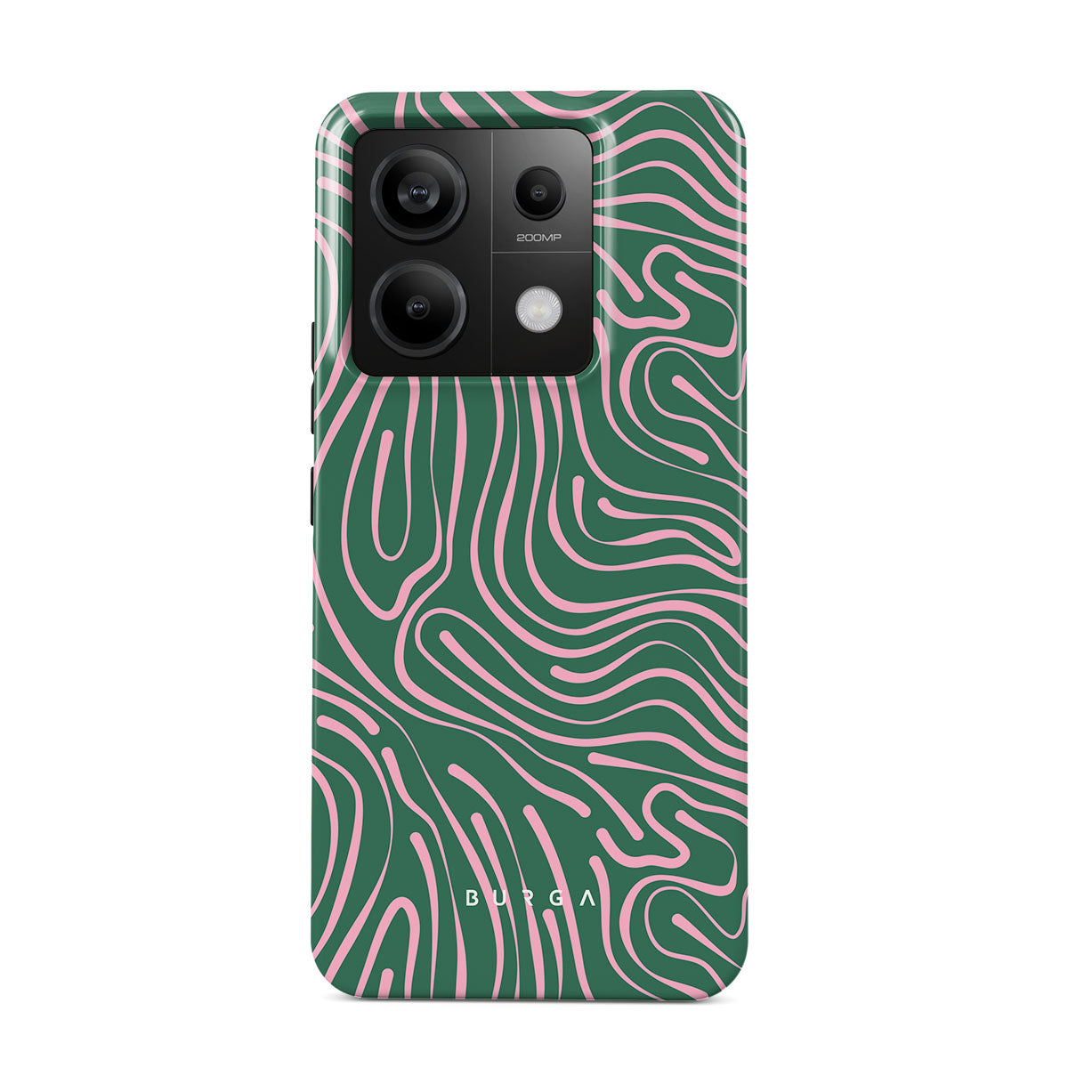Fresh and mesmerizing, our Hawaiian Breeze Xiaomi Redmi Note 13 Pro 5G phone case design combines a pastel pink wavy pattern with a crisp green background creating a refreshing look. The abstract pattern will indeed become a star in your accessorizing game, while the phone case will keep your device protected at all times!
