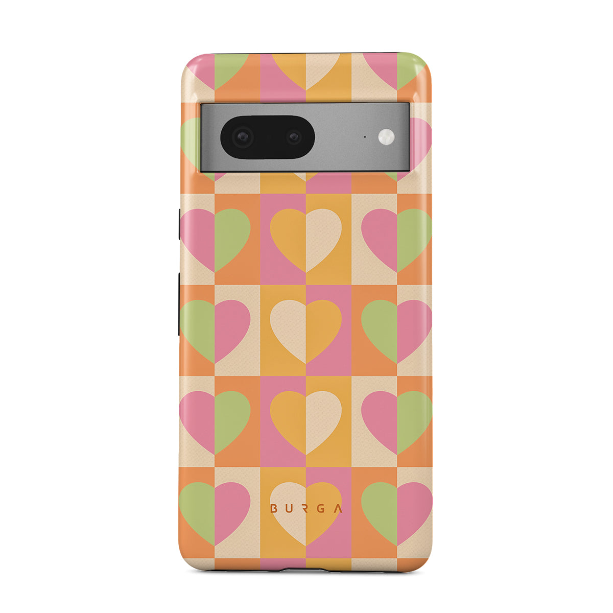 Beautifully geometrical and lovable Summer Love Google Pixel 7a phone case combines a soft pastel color scheme with a playful square heart pattern. Adding a touch of love to your style was never easier! Keep your phone as safe as you keep your heart in a cheeky checkered protective phone case!