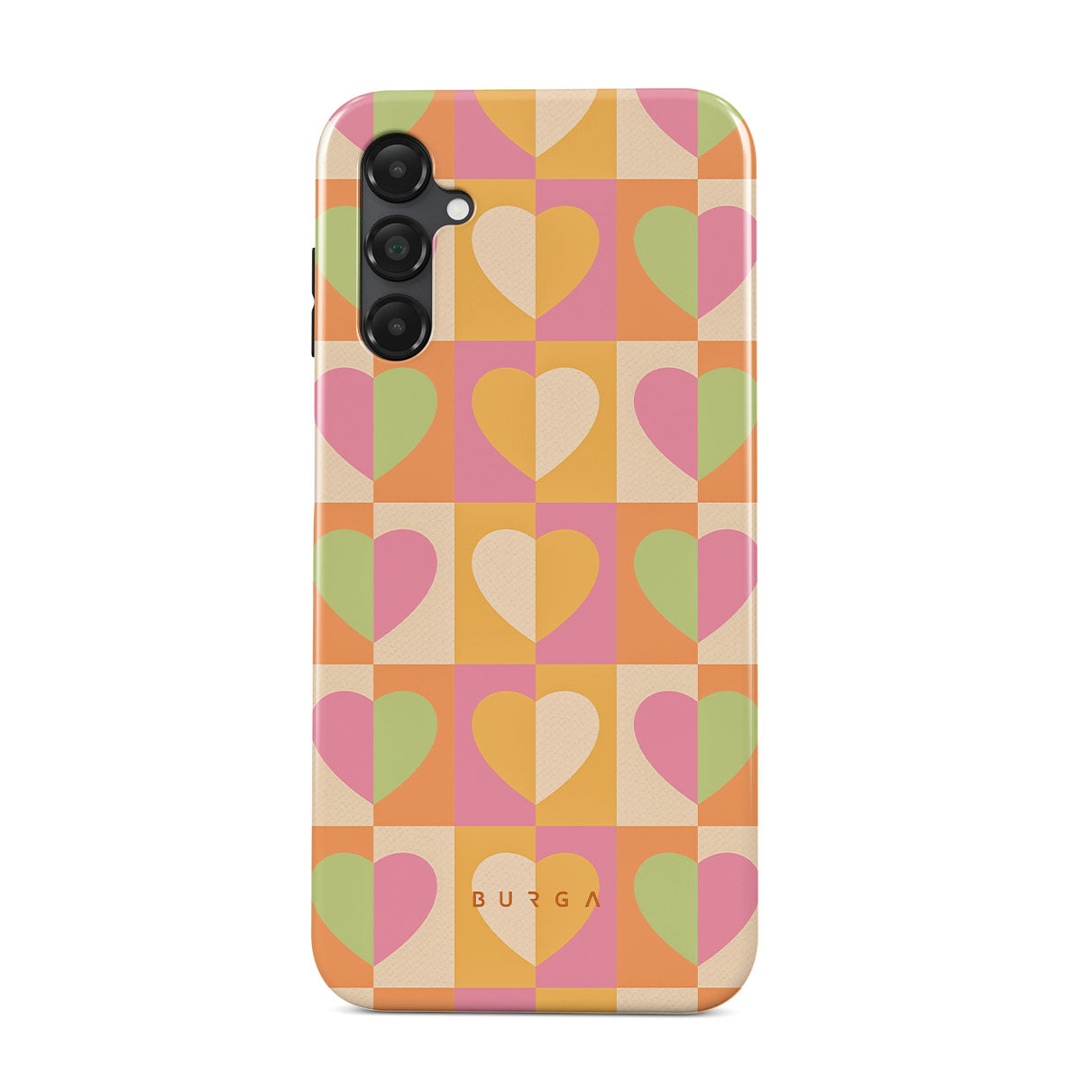 Beautifully geometrical and lovable Summer Love Samsung Galaxy A25 phone case combines a soft pastel color scheme with a playful square heart pattern. Adding a touch of love to your style was never easier! Keep your phone as safe as you keep your heart in a cheeky checkered protective phone case!