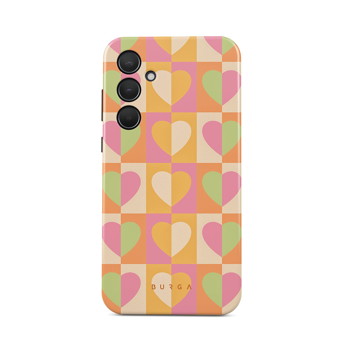 Beautifully geometrical and lovable Summer Love Samsung Galaxy A35 phone case combines a soft pastel color scheme with a playful square heart pattern. Adding a touch of love to your style was never easier! Keep your phone as safe as you keep your heart in a cheeky checkered protective phone case!